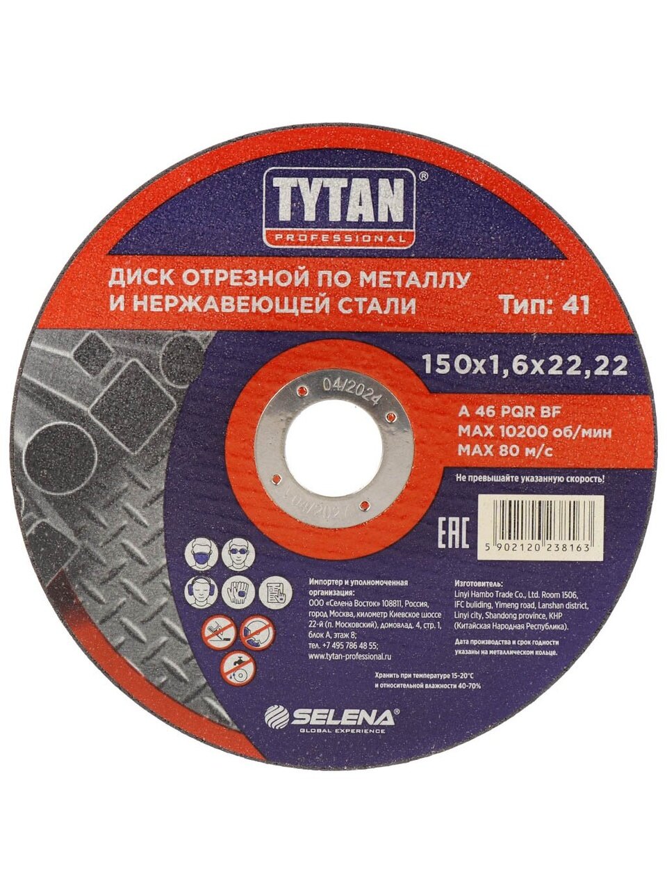 Вы можете приобрести «Диск отрезной по металлу и нержавеющей стали, Tytan, Professional, диаметр 150х1.6 мм, посадочный диаметр 22.22 мм, 38163» и другие товары в нашем интернет-магазине в Армавире по низким ценам и с бесплатным самовывозом.