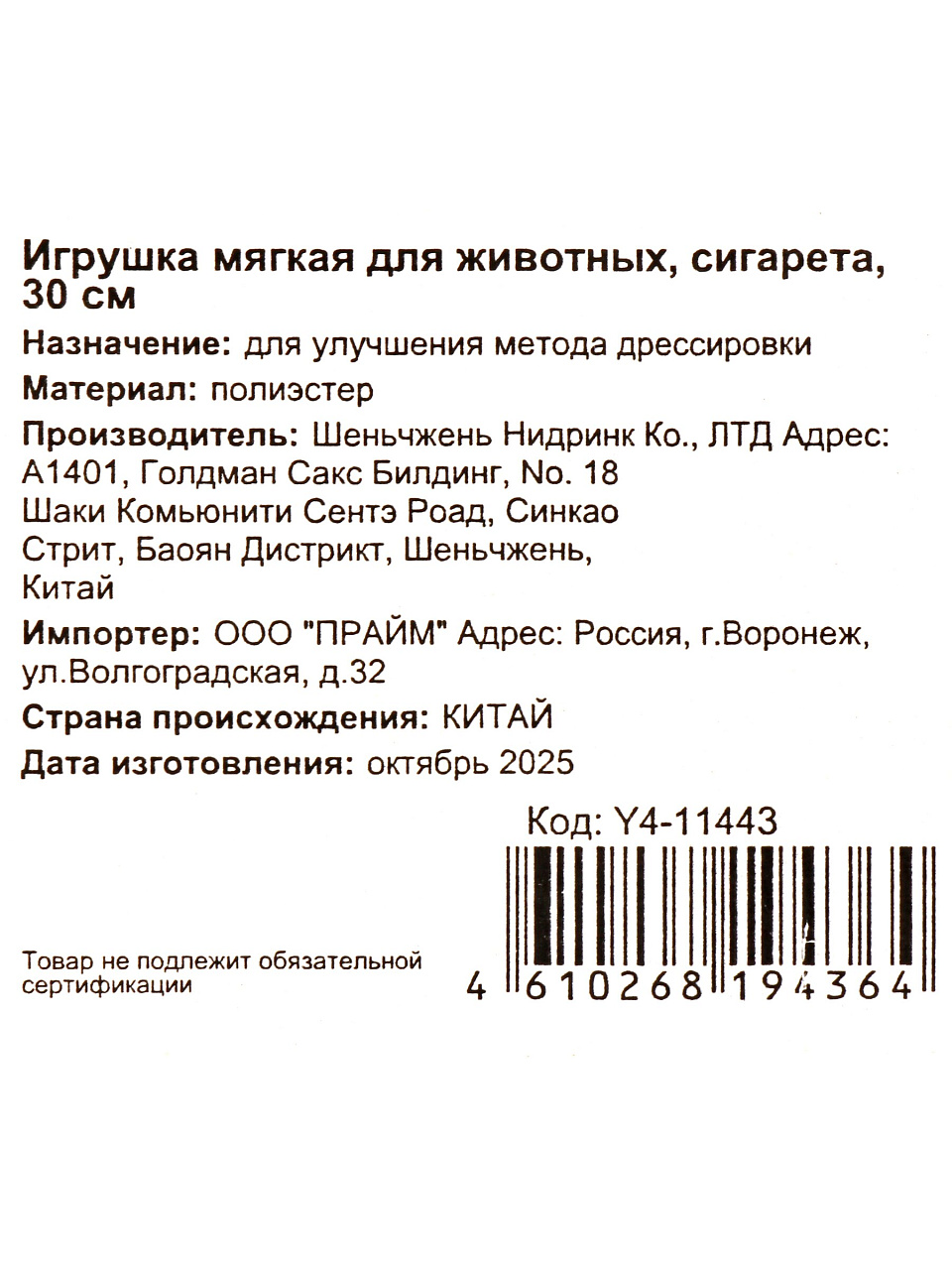 Вы можете приобрести «Игрушка мягкая для животных, сигарета, 30 см, Y4-11443» и другие товары в нашем интернет-магазине в Коврове по низким ценам и с бесплатным самовывозом.