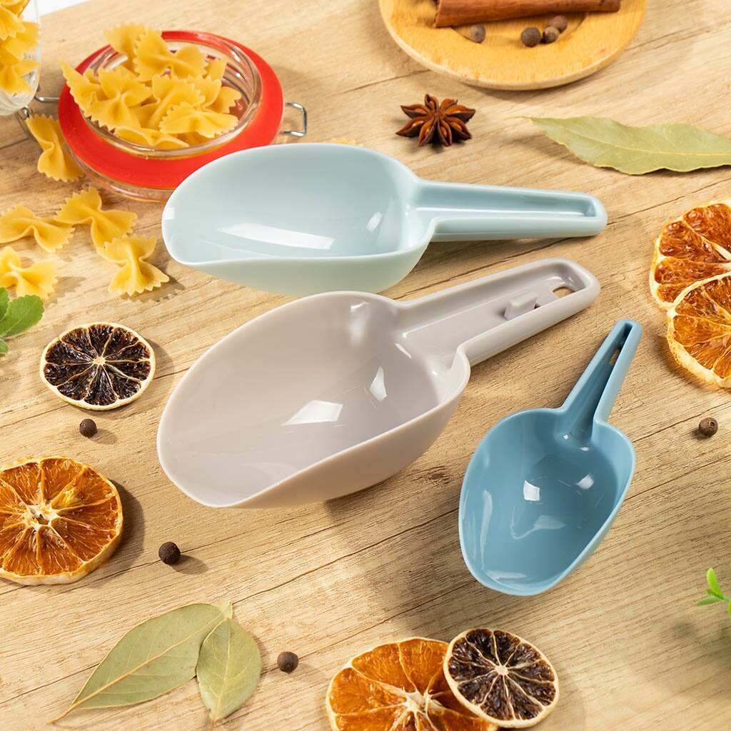 - Набор пластиковых совков позволяет быстро и точно отмерить нужное количество продукта, сокращая время на приготовление блюд.