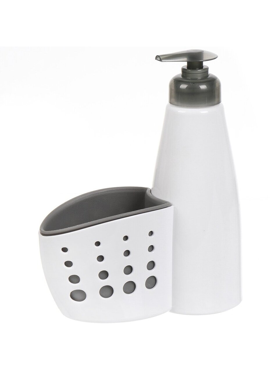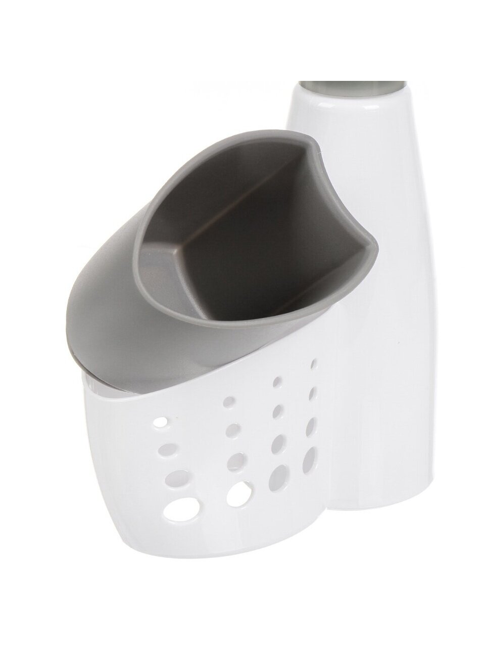 Кухонный органайзер идеально подходит для компактного и аккуратного хранения принадлежностей для мытья посуды. В одном изделии: дозатор для жидкого мыла и отделение для губок. Органайзер не занимает много места.
