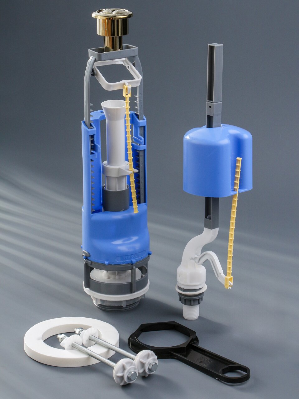 Комплект арматуры изготовлен в соответствии с требованиями ГОСТ 21485-2016 ("Бачки смывные и арматура к ним")