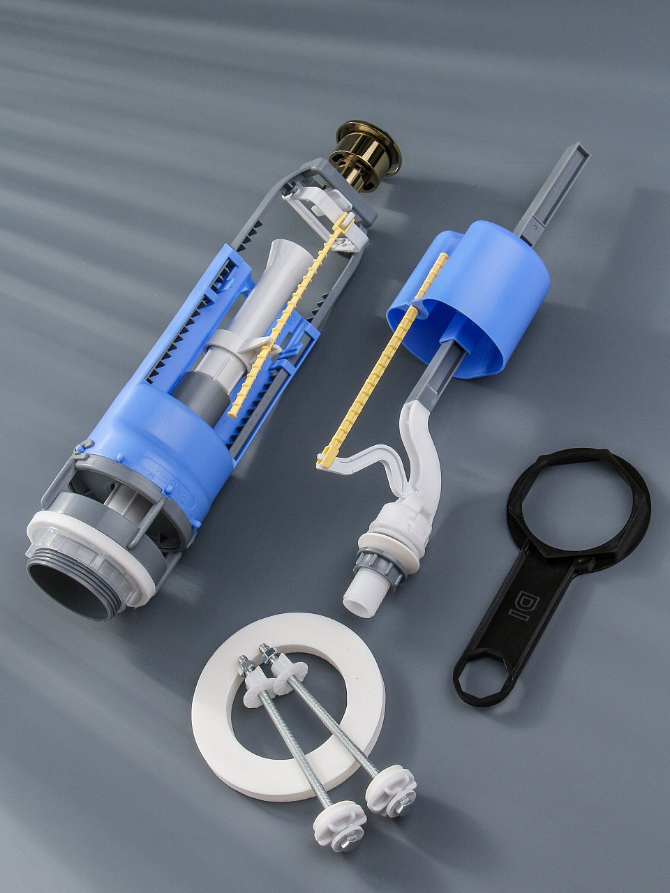 В комплекте прилагается крепление для бачка и ключ для затягивания гаек спускного и наполнительного клапана.