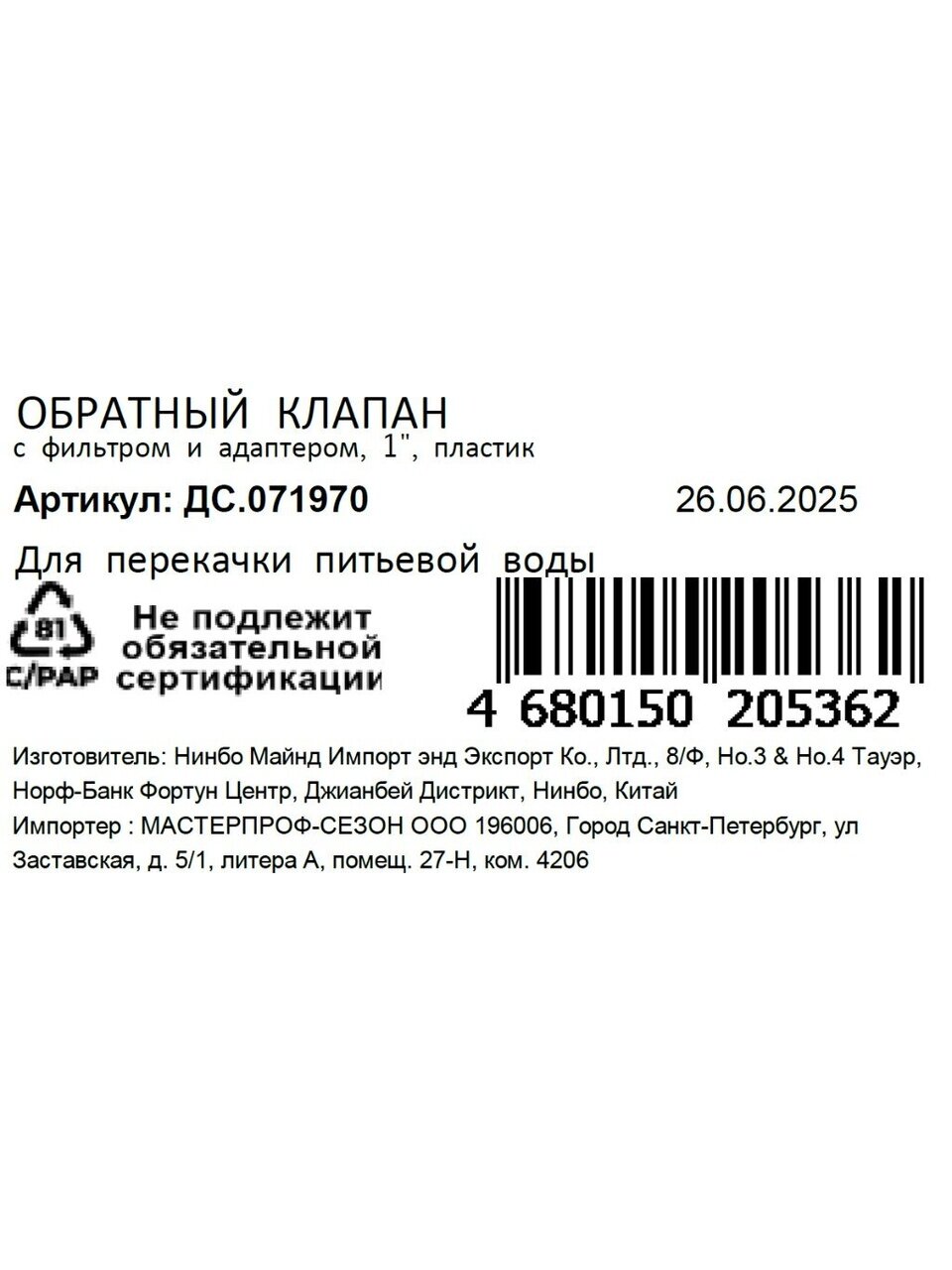 Установка клапана обратного MasterProf — это эффективный способ повысить безопасность и надежность домашней системы водоснабжения. Благодаря продуманной конструкции, монтаж устройства не требует специальных навыков, что делает его привлекательным выбором для самостоятельного использования в домашних условиях и на даче. Современный дизайн и компактные размеры обеспечивают аккуратный внешний вид и удобство эксплуатации даже в ограниченном пространстве. Клапан обратный с фильтром и адаптером — это не только практичное, но и экономичное решение, позволяющее минимизировать затраты на обслуживание и ремонт водопроводных коммуникаций.