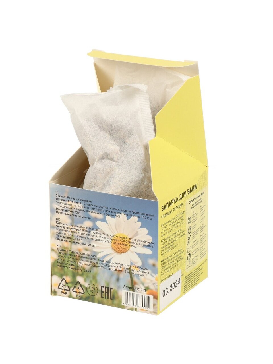 Покупая запарку "Ромашка аптечная", вы получаете не только продукт высокого качества, но и возможность сделать каждый визит в баню настоящим ритуалом релаксации и оздоровления. Ромашка известна своими полезными свойствами, такими как успокоение нервной системы и улучшение состояния кожи. Это делает запарку идеальным выбором для тех, кто ценит комфорт и заботится о своем здоровье.