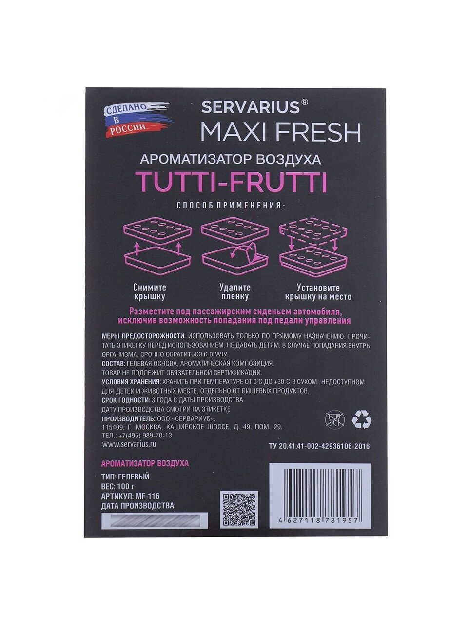 Вы можете приобрести «Ароматизатор в машину под сиденье, Maxi Fresh, Tutti Fruitty, MF-116» и другие товары в нашем интернет-магазине в Тамбове по низким ценам и с бесплатным самовывозом.