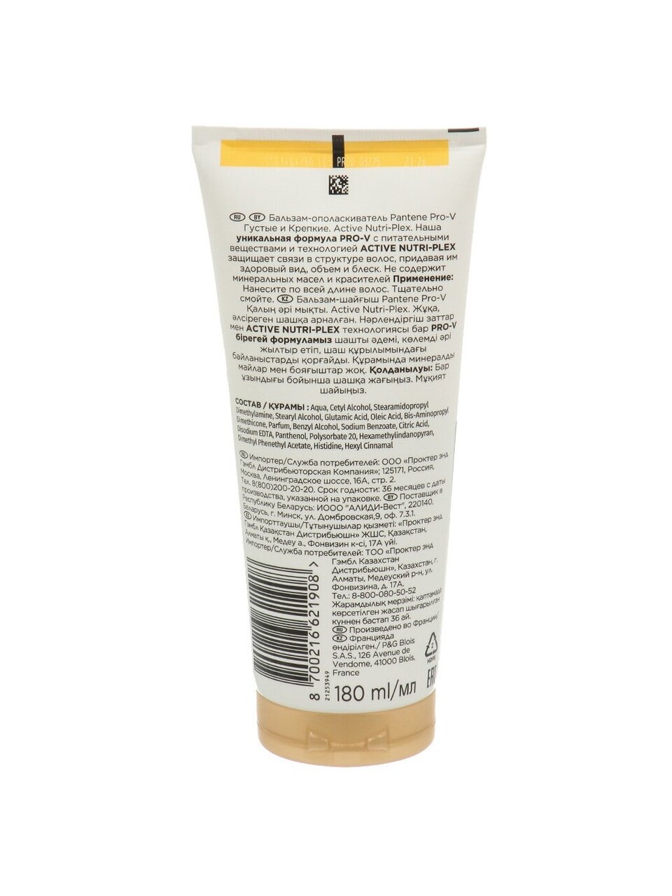 Откройте для себя бальзам-ополаскиватель для сухих и поврежденных волос Pantene "Густые и крепкие", который подарит вашим волосам силу и густоту. Формула разработана для восстановления и увлажнения, обеспечивая здоровый вид и блеск.