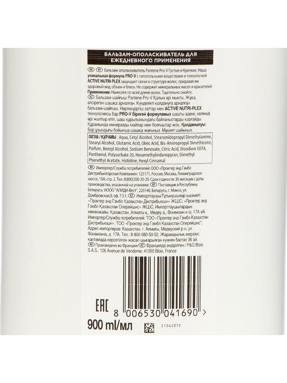 Бальзам-ополаскиватель Pantene Pro-V «Густые и крепкие», 900 мл — быстрый способ сделать волосы плотнее и сильнее, заметный результат уже после первого применения.