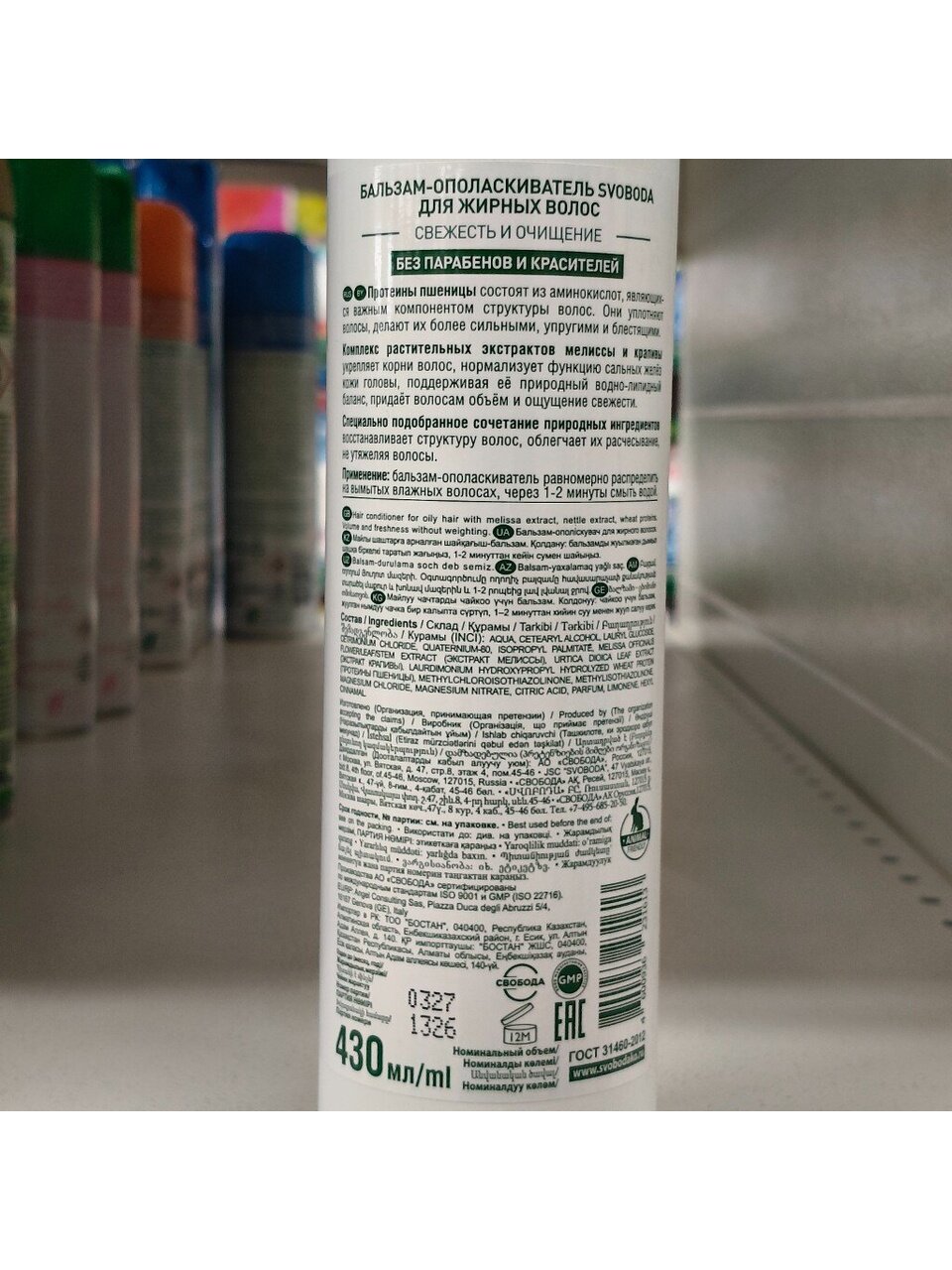 Вы можете приобрести «Бальзам-ополаскиватель для жирных волос, Svoboda Natural, Протеины пшеницы, экстракт мелиссы, экстракт крапивы, 430 мл» и другие товары в нашем интернет-магазине в Таганроге по низким ценам и с бесплатным самовывозом.