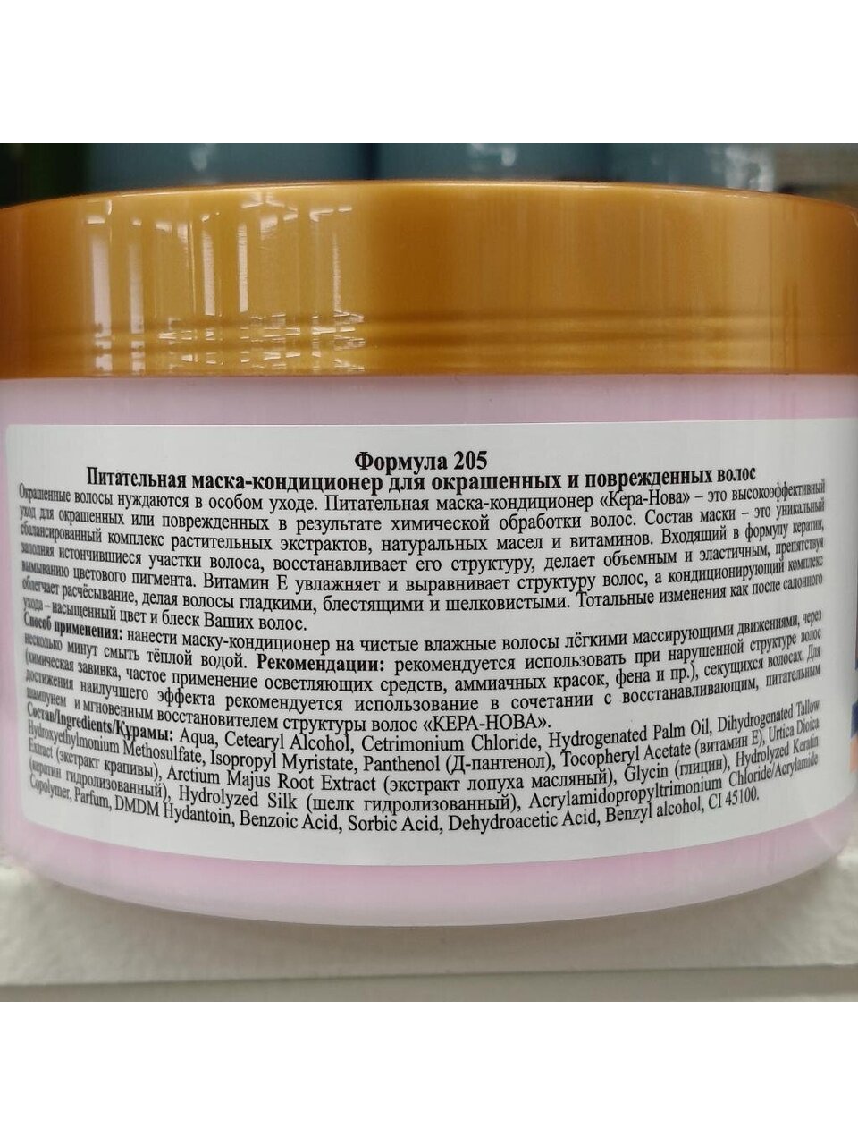 Окрашенные волосы нуждаются в особом уходе. Питательная маска-кондиционер «Кера- Нова» - это высокоэффективный уход для окрашенных или поврежденных в результате химической обработки волос. Состав маски – это уникальный сбалансированный комплекс растительных экстрактов, натуральных масел и витаминов. Входящий в формулу кератин, заполняя истончившиеся участки волоса, восстанавливает его структуру, делает объемным и эластичным, препятствуя вымыванию цветового пигмента. Витамин Е увлажняет и выравнивает структуру волос, а кондиционирующий комплекс облегчает расчёсывание, делая волосы гладкими, блестящими и шелковистыми.