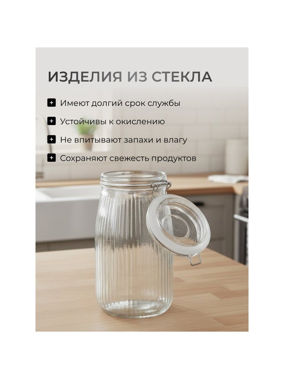 - стеклянный материал: сохраняет свежесть и аромат продуктов;