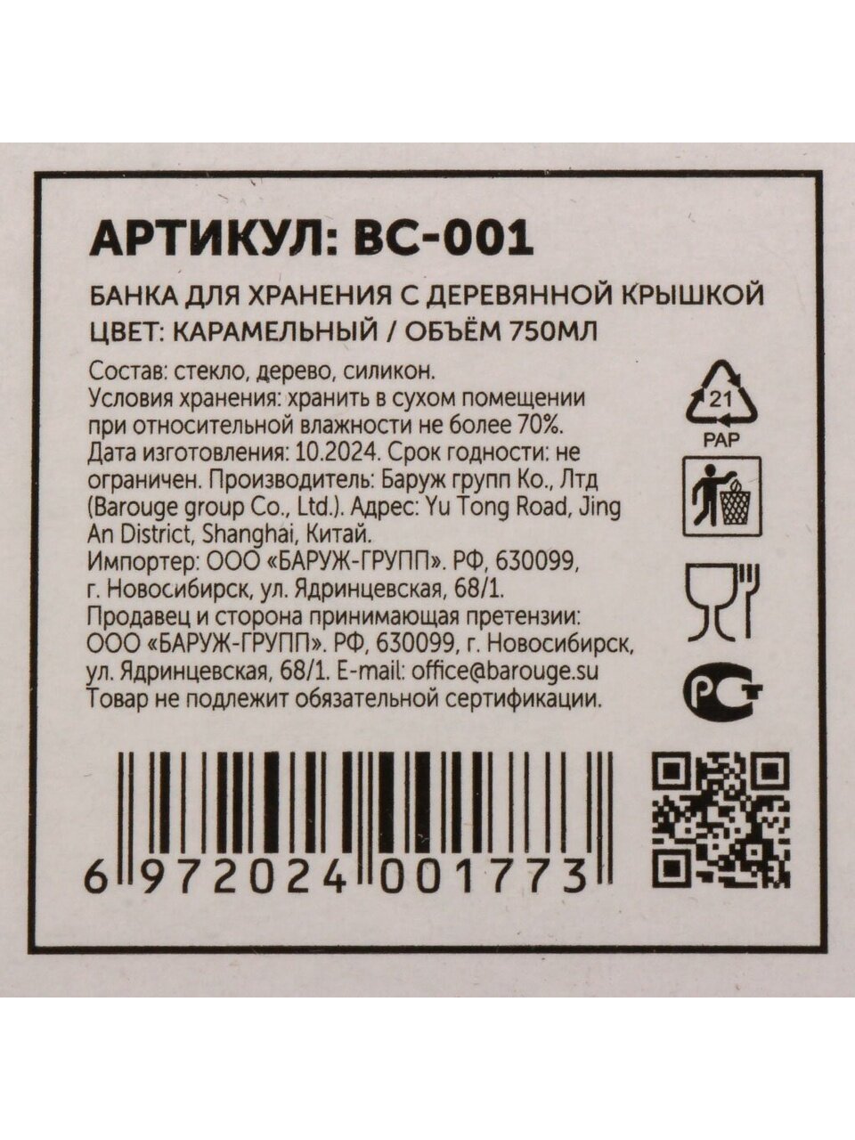 Практичная банка для сыпучих продуктов Barouge Мед объемом 0.75 л — стильное и функциональное решение для хранения круп, сахара, специй и других ингредиентов. Прозрачное стекло позволяет легко контролировать остаток содержимого, а герметичная деревянная крышка сохраняет свежесть и аромат продуктов. Элегантный квадратный дизайн с гладкой текстурой гармонично впишется в любую кухню, подчеркнув современный стиль и заботу о порядке. Идеальный выбор для организации пространства и удобства на кухне.