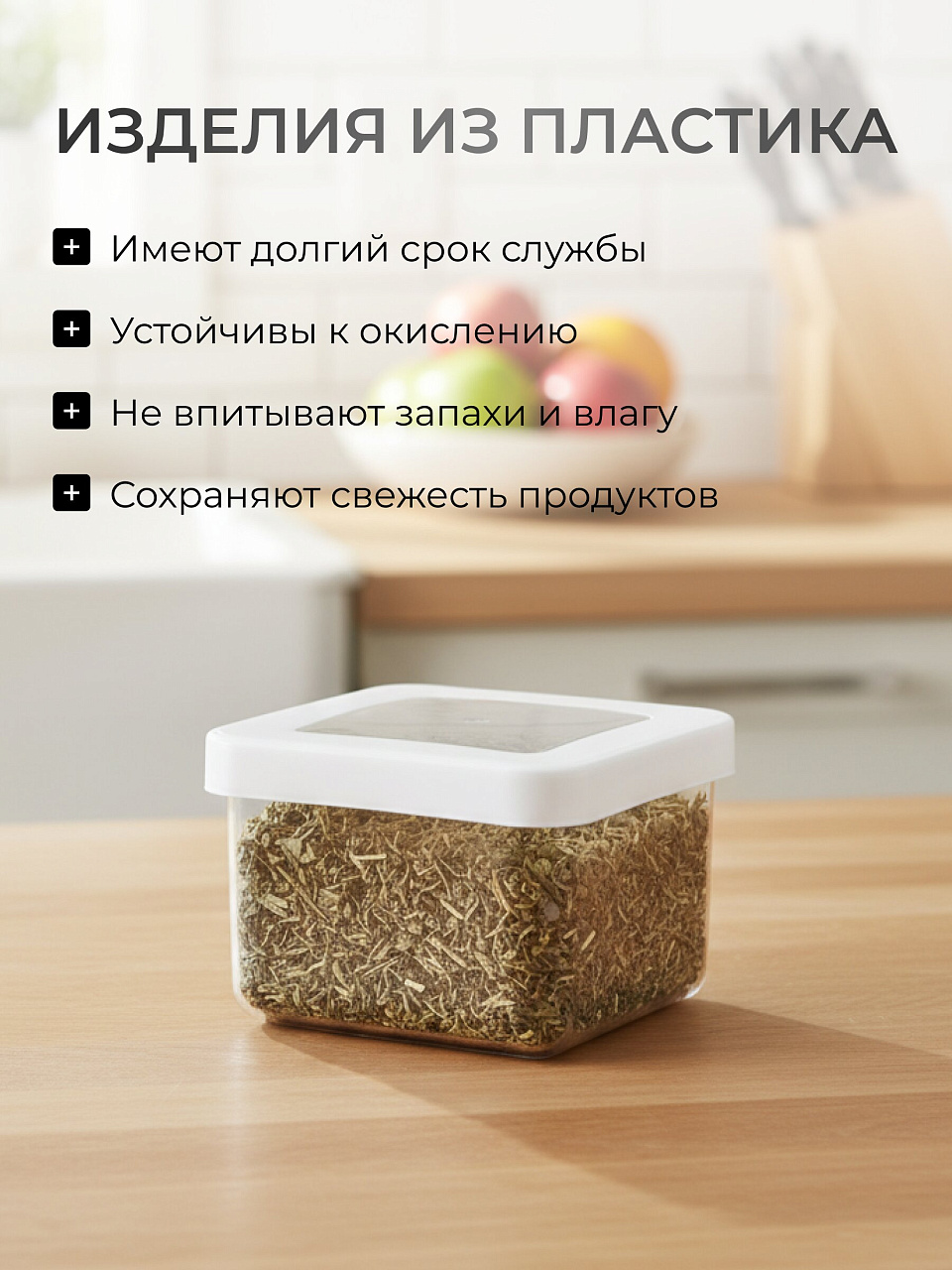 Изделия имеют прозрачный корпус и крышку. Поэтому всегда видно содержимое и его количество, не важно где стоят ёмкости, в выдвижном или навесном ящике.