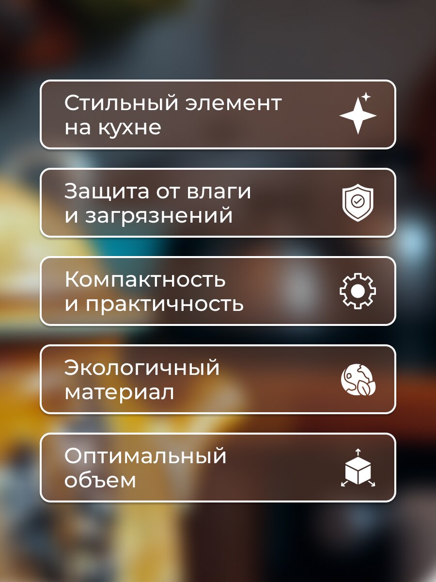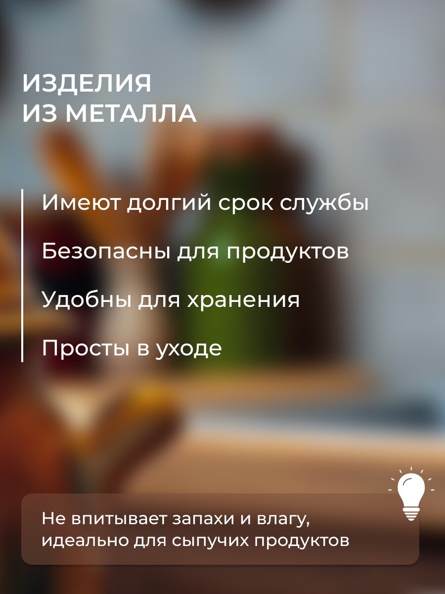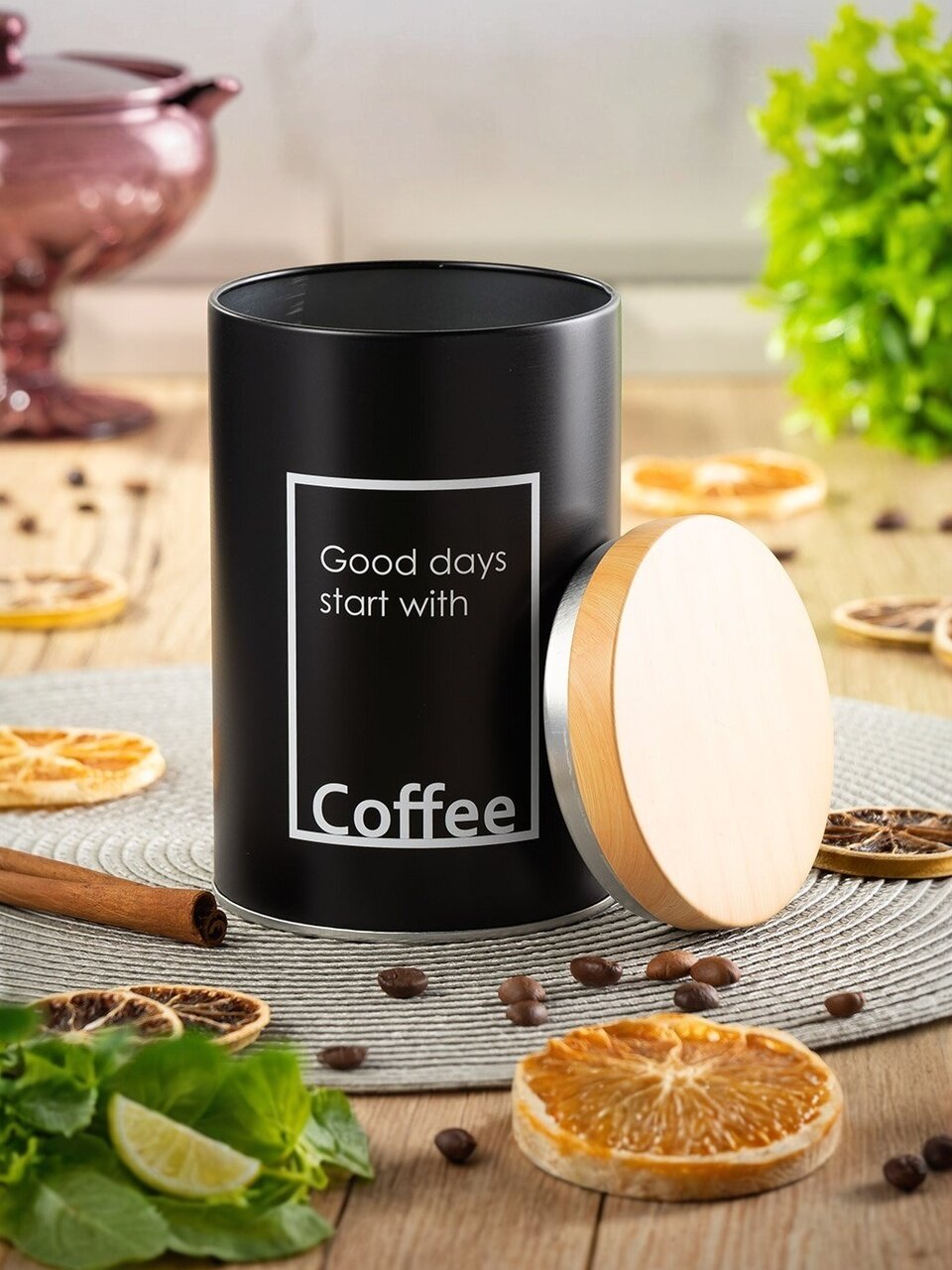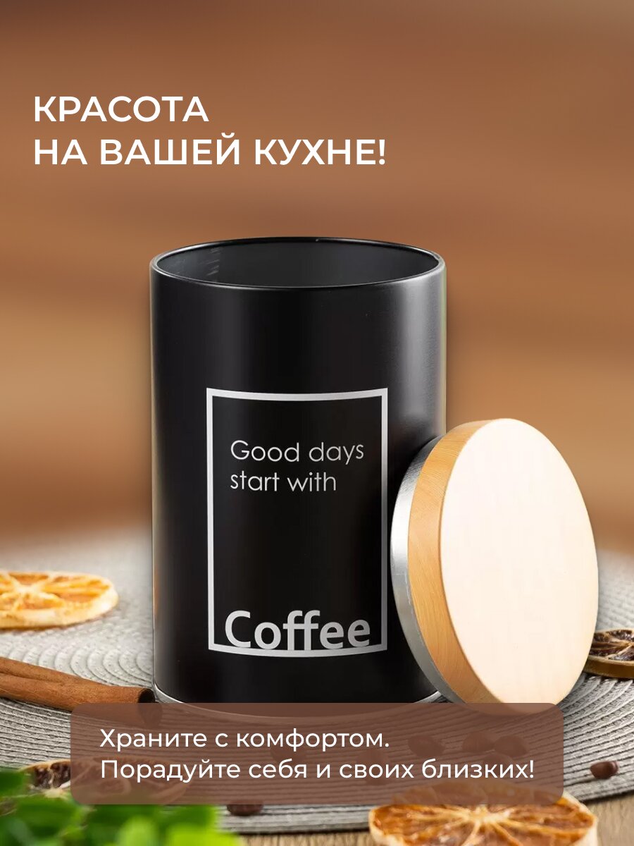 Полезные мелочи на кухне могут быть еще и стильными. Металлическая черная банка для сыпучих продуктов прекрасно подойдет для хранения зерен кофе. Плотная деревянная крышка с внутренней частью из нержавеющей стали защитит содержимое от влаги. Строгий минималистичный внешний вид является интересным функциональным решением для современной кухни.
