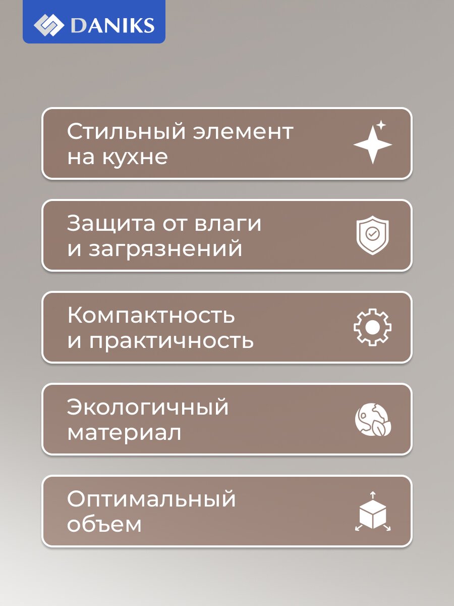- Емкость универсальна и очень удобна в использовании, она поможет поддерживать порядок на кухне и сделает готовку комфортной.