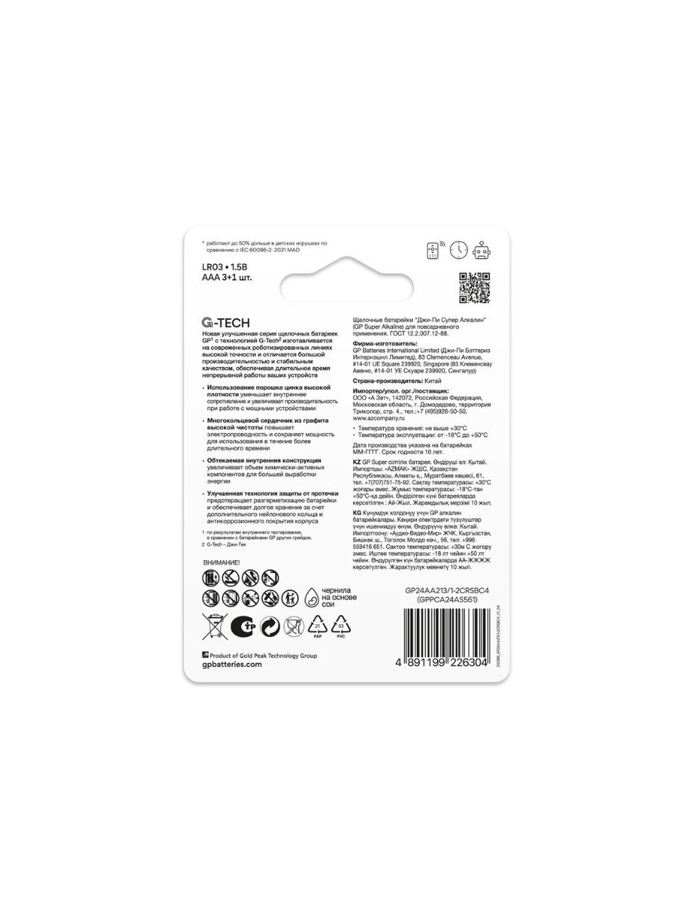 Батарейка GP, ААА (LR03, 24A), 24AA213/1-2CRSBC4, алкалиновая, блистер, 4 шт, 1291