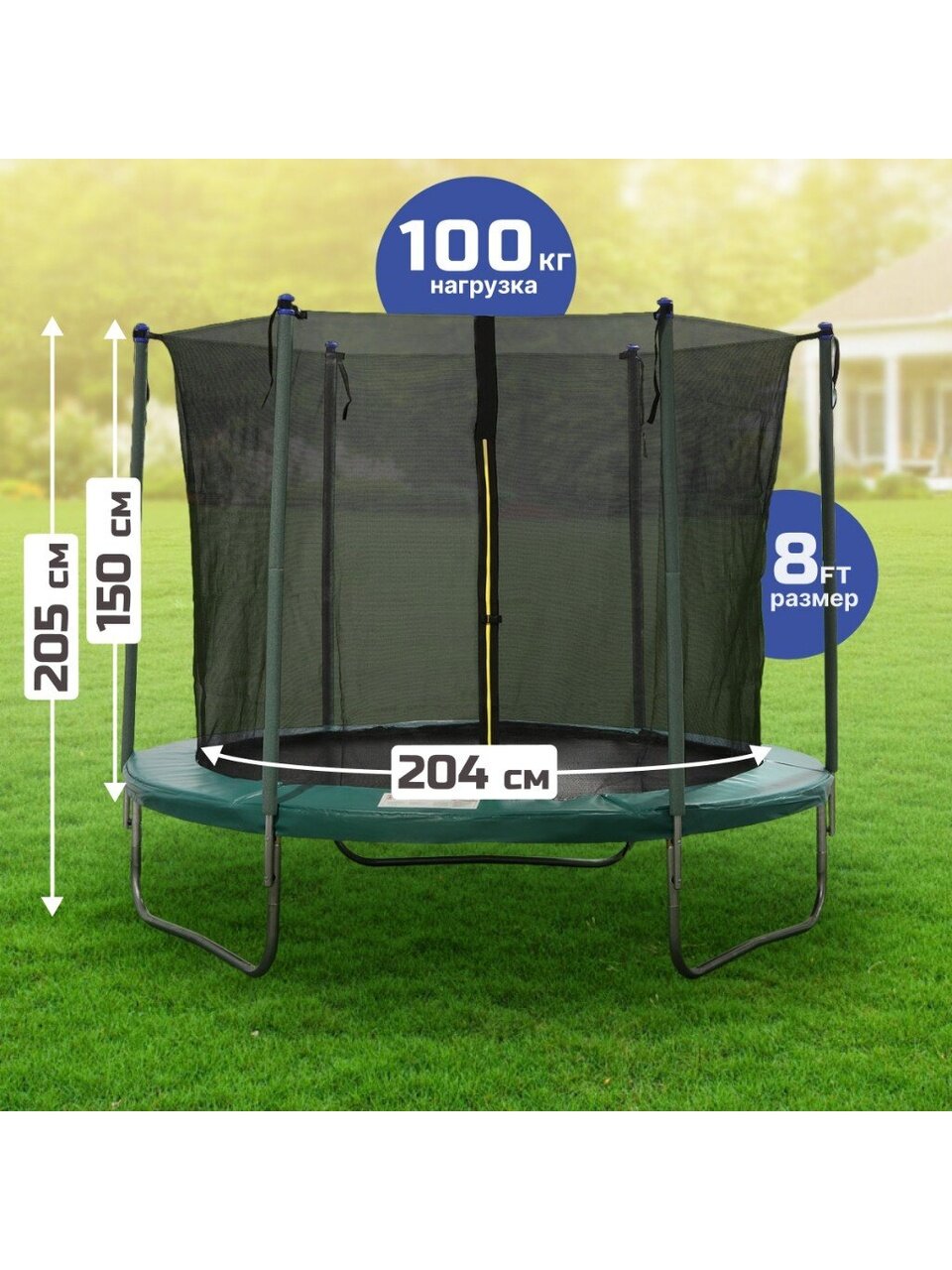 - Безопасность: защитная внутренняя сеть исключает падение с высоты, 3-слойный мат - соприкосновение с пружинным механизмом, двойная молния с фиксатором входа.
