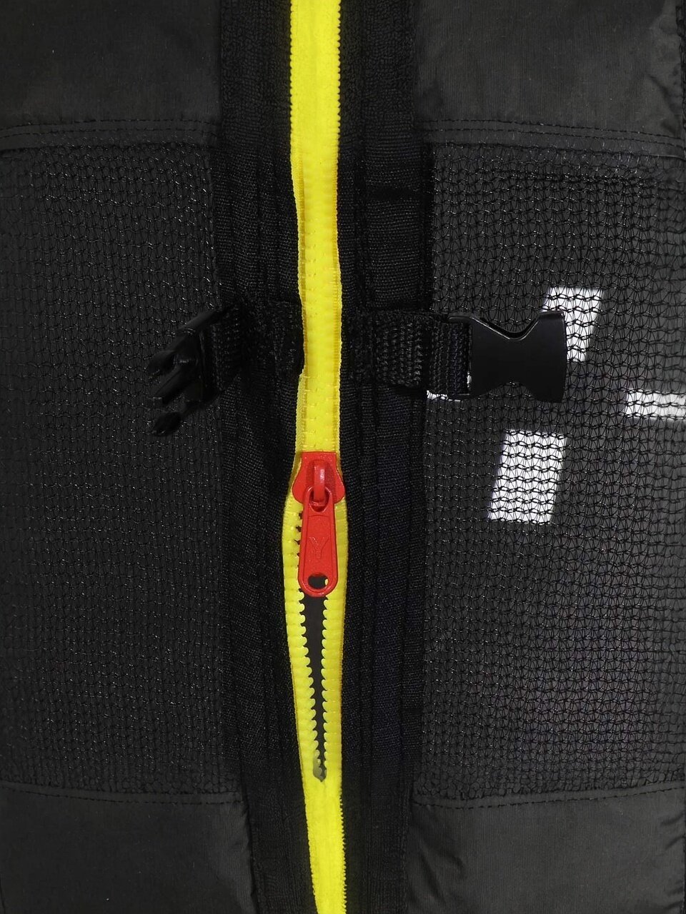 Защитная сеть входит в обязательную комплектацию батутов. Сетка батута устойчива к УФ-излучению полиэтиленовая сетка. Инновационное крепление увеличивает рабочее пространство батута, исключает соприкосновение с пружинным механизмом, все элементы крепления закрыты мягким матом или выполнены из безопасных материалов. Вход на усиленной молнии, оборудован дополнительными фиксаторами, защищен от случайного открывания.