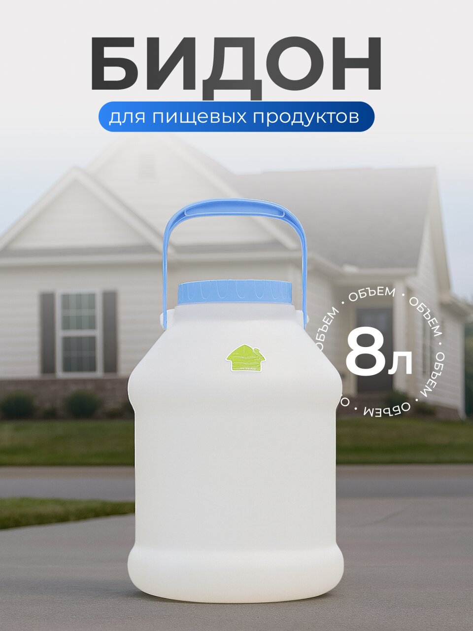 Бидон предназначен для хранения и транспортировки пищевых продуктов: воды, молока, масла, меда, варенья, круп, сахара. Бидон имеет винтовую крышку, которая достаточно плотно прилегает к корпусу, но не гарантирует полную герметичность. Для удобства переноски имеется удобная встроенная ручка.. Бидон изготовлен из пищевого пластика, который является полностью безопасным.