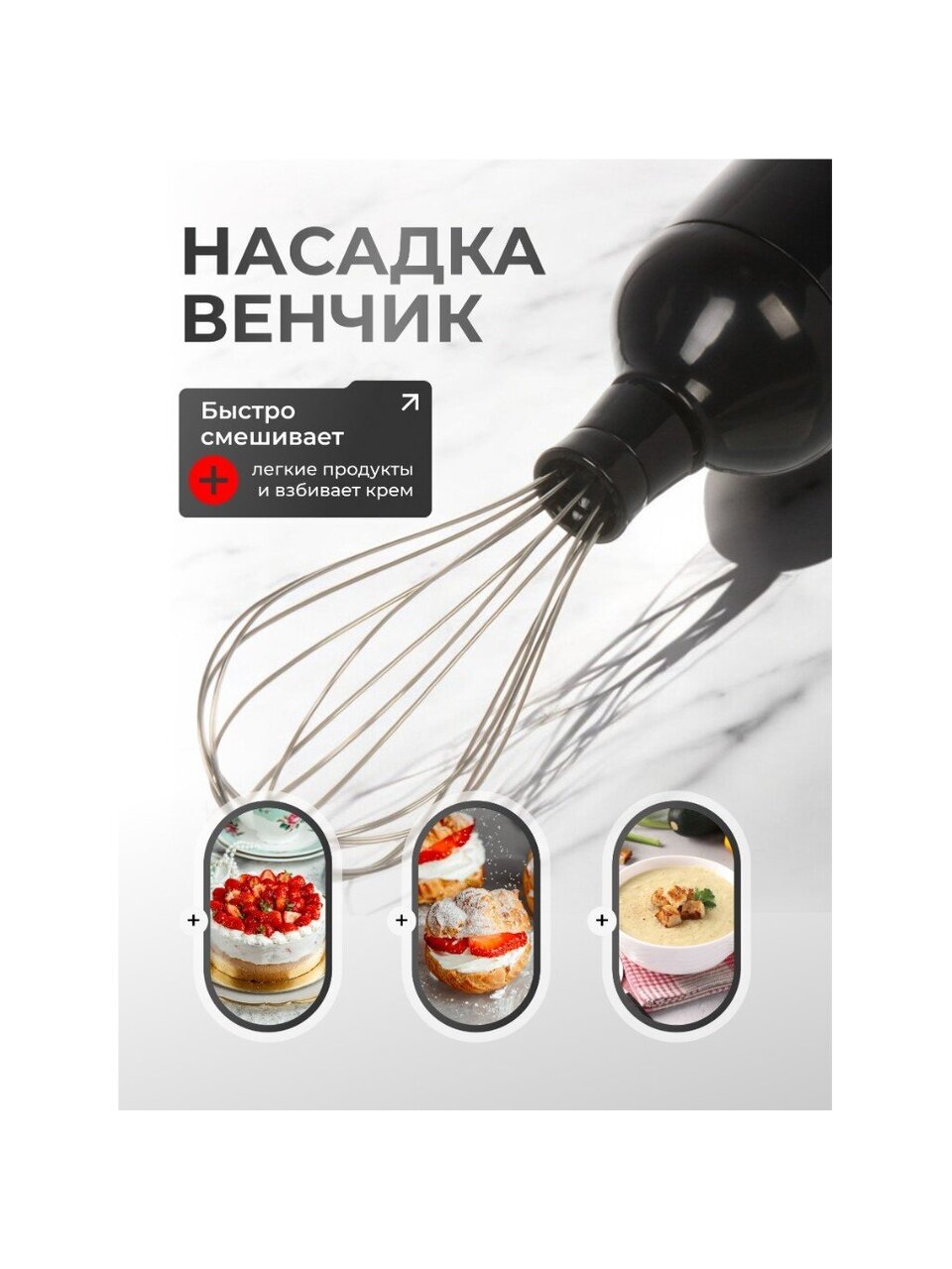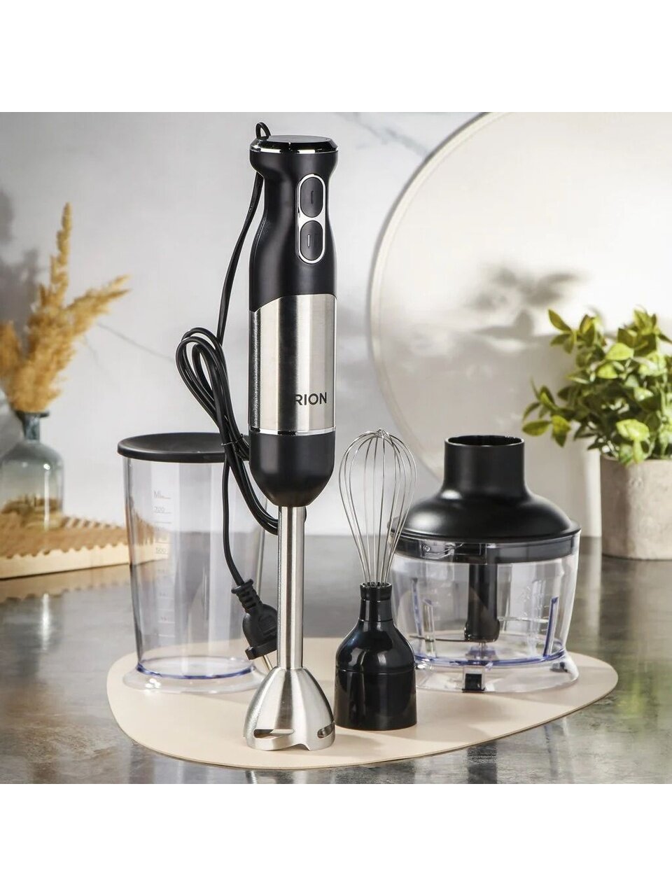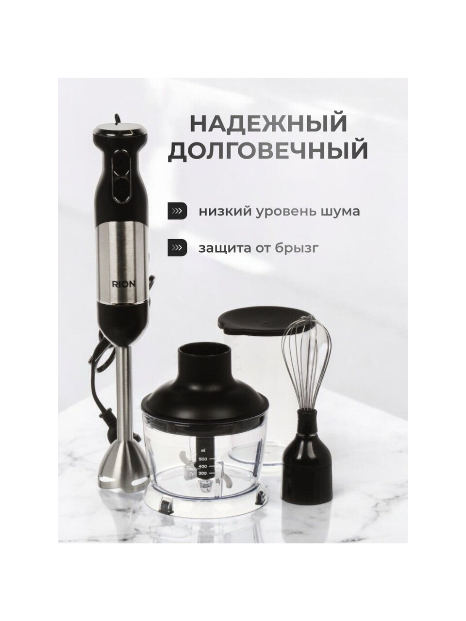 - комплектация 3 в 1: погружной блендер, блендерный набор и измельчитель в одном устройстве;