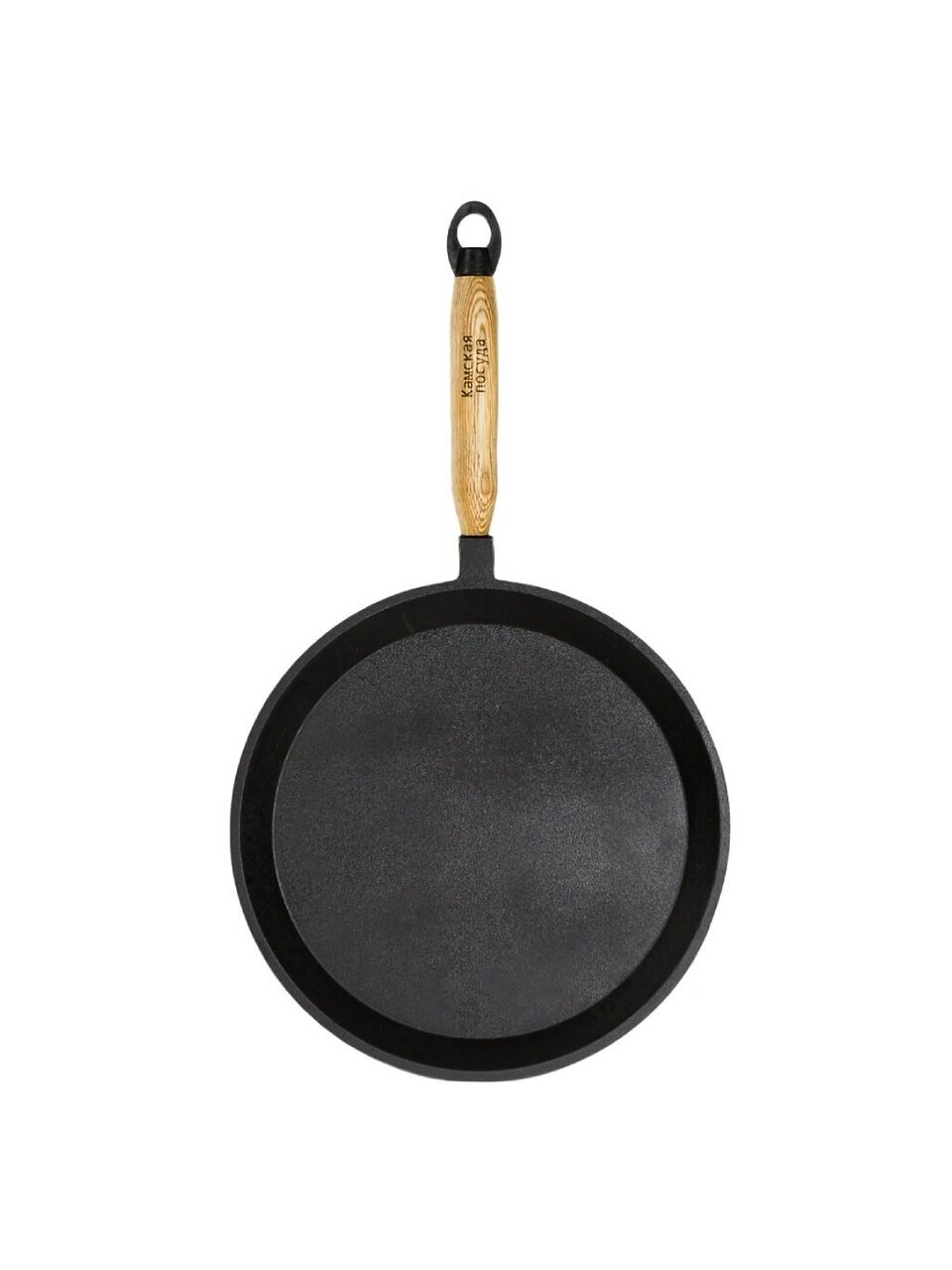 Блинница чугун, 24 см, Камская посуда, бл240, съемная ручка, деревянная ручка, индукция