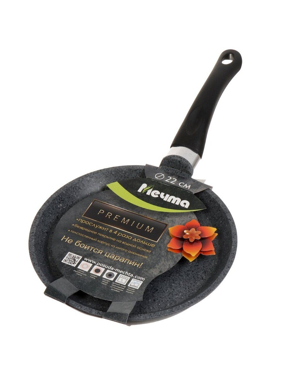 Откройте для себя идеальный инструмент для приготовления аппетитных блинов и других блюд - алюминиевая блинница диаметром 22 см с мраморным антипригарным покрытием от бренда "Мечта". Эта модель Premium grey станет незаменимым помощником на кухне благодаря своим уникальным характеристикам и современному дизайну.