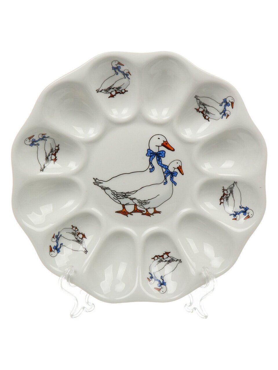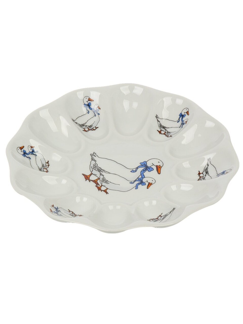 Блюдо для яиц из фарфора «Гуси», 22 см — стильный акцент для пасхального стола и ежедневных завтраков. Идеальное решение для сервировки и подарка.