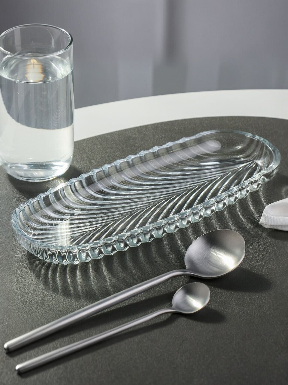 Размер: 11×27,5×2 см, материал — прозрачное стекло, форма — овальная, без крышки, с рельефным украшением, в подарочной упаковке, бренд Kaveh, страна производства — Иран.