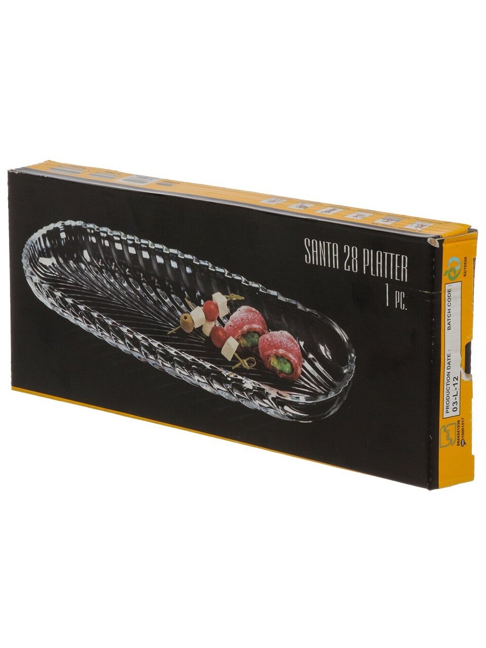Блюдо овальное стеклянное Kaveh Santa — это выбор для тех, кто ценит минимализм и практичность. Благодаря бесцветному стеклу и рельефному декору это блюдо гармонично впишется в любой интерьер, а подарочная упаковка делает его отличным вариантом для подарка. Часто спрашивают, как выбрать подходящее блюдо для закусок или фруктов — оптимальный размер 11×27,5 см позволяет сервировать сыр, нарезку и фрукты как для семьи, так и для гостей.