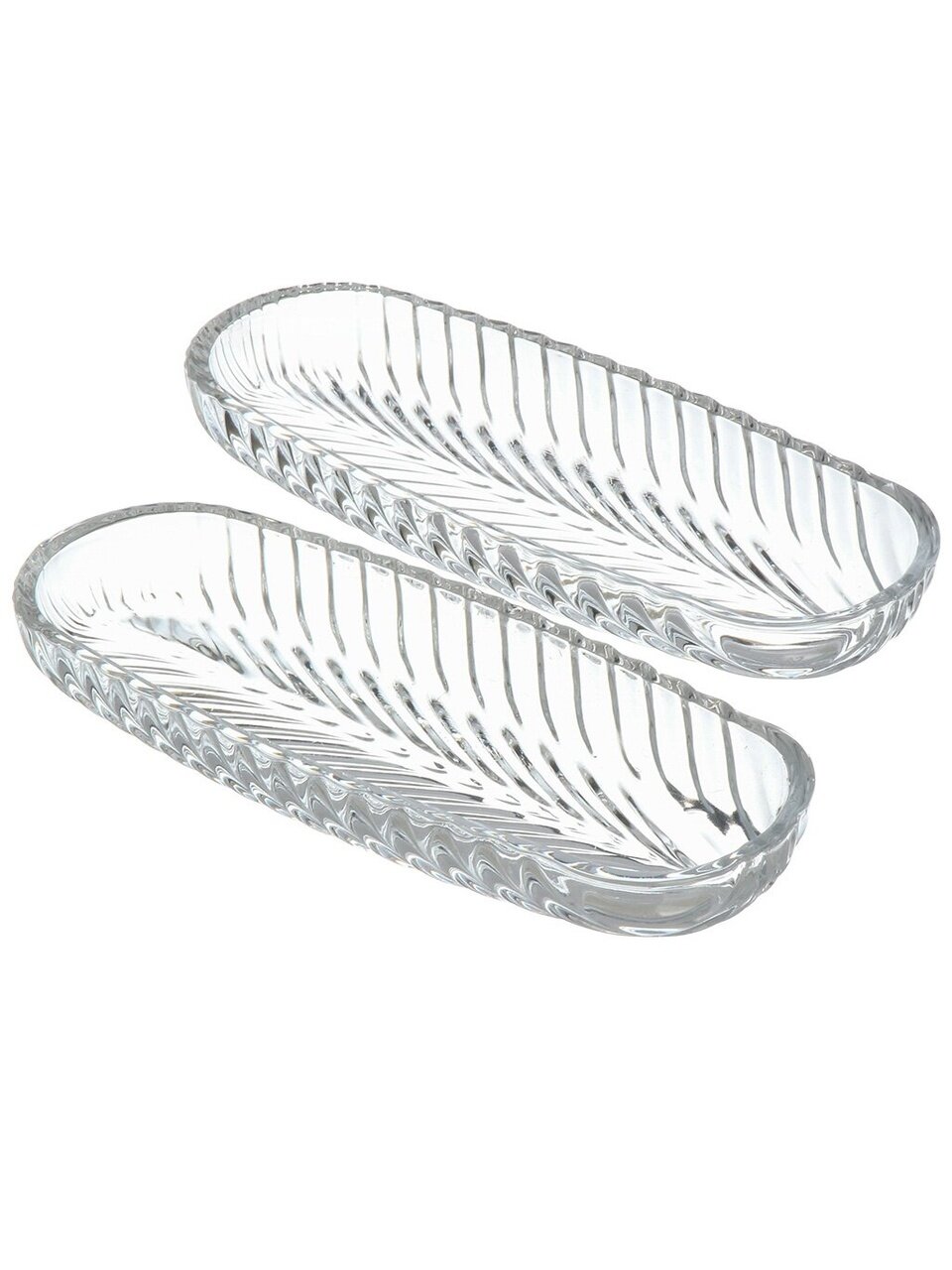 В наборе 2 стеклянных блюда, каждое размером 8×19 см. Комплект поставляется в подарочной упаковке.