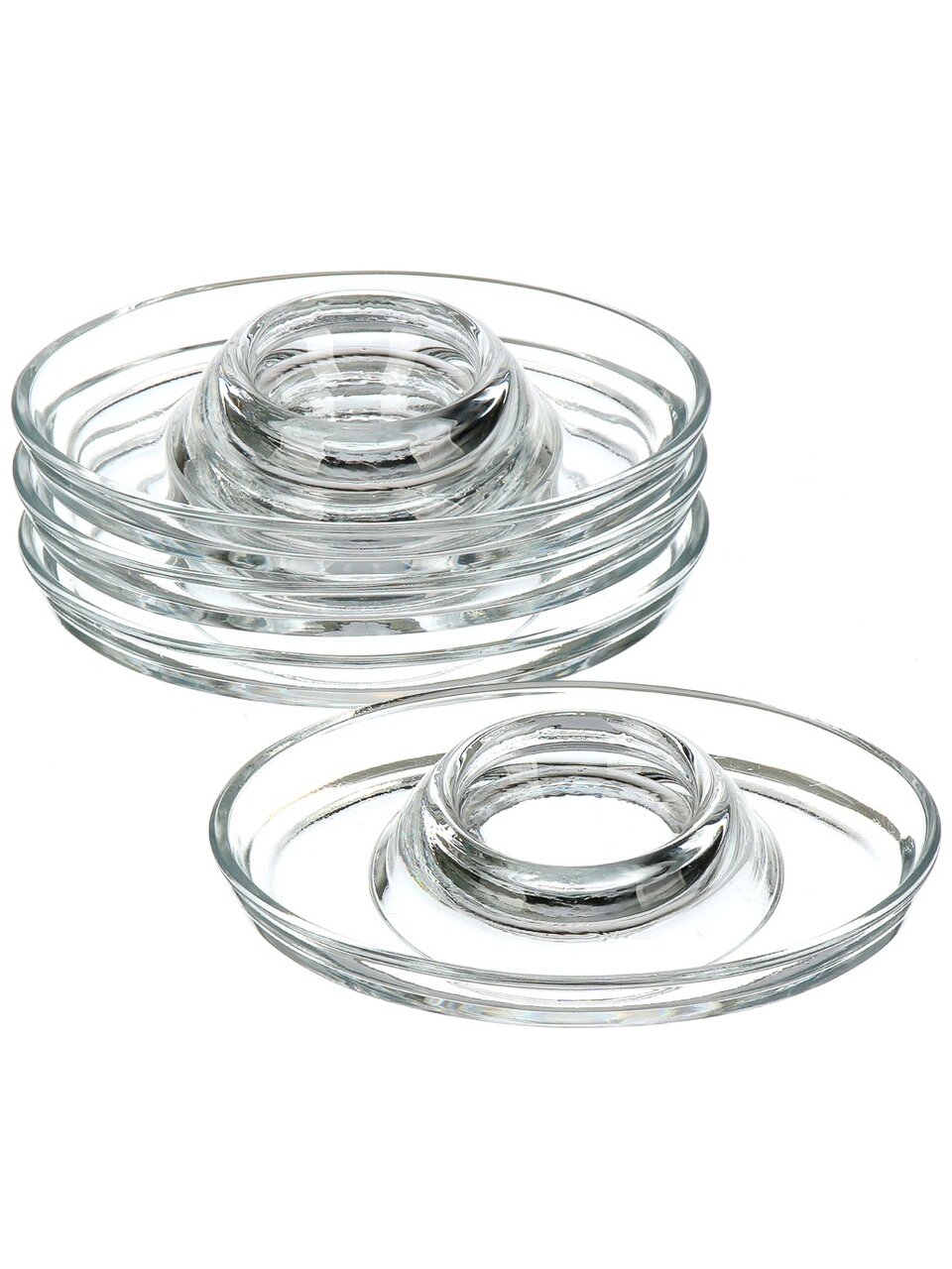 Блюдо для яиц Pasabahce Basic: набор из 4 круглых стеклянных блюдец 12,7 см — стильное решение для сервировки, подходит для СВЧ и посудомоечной машины.