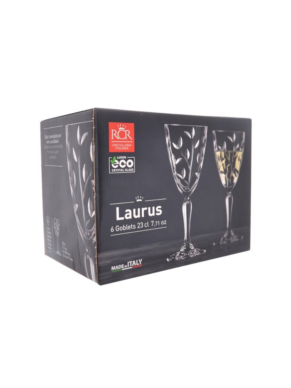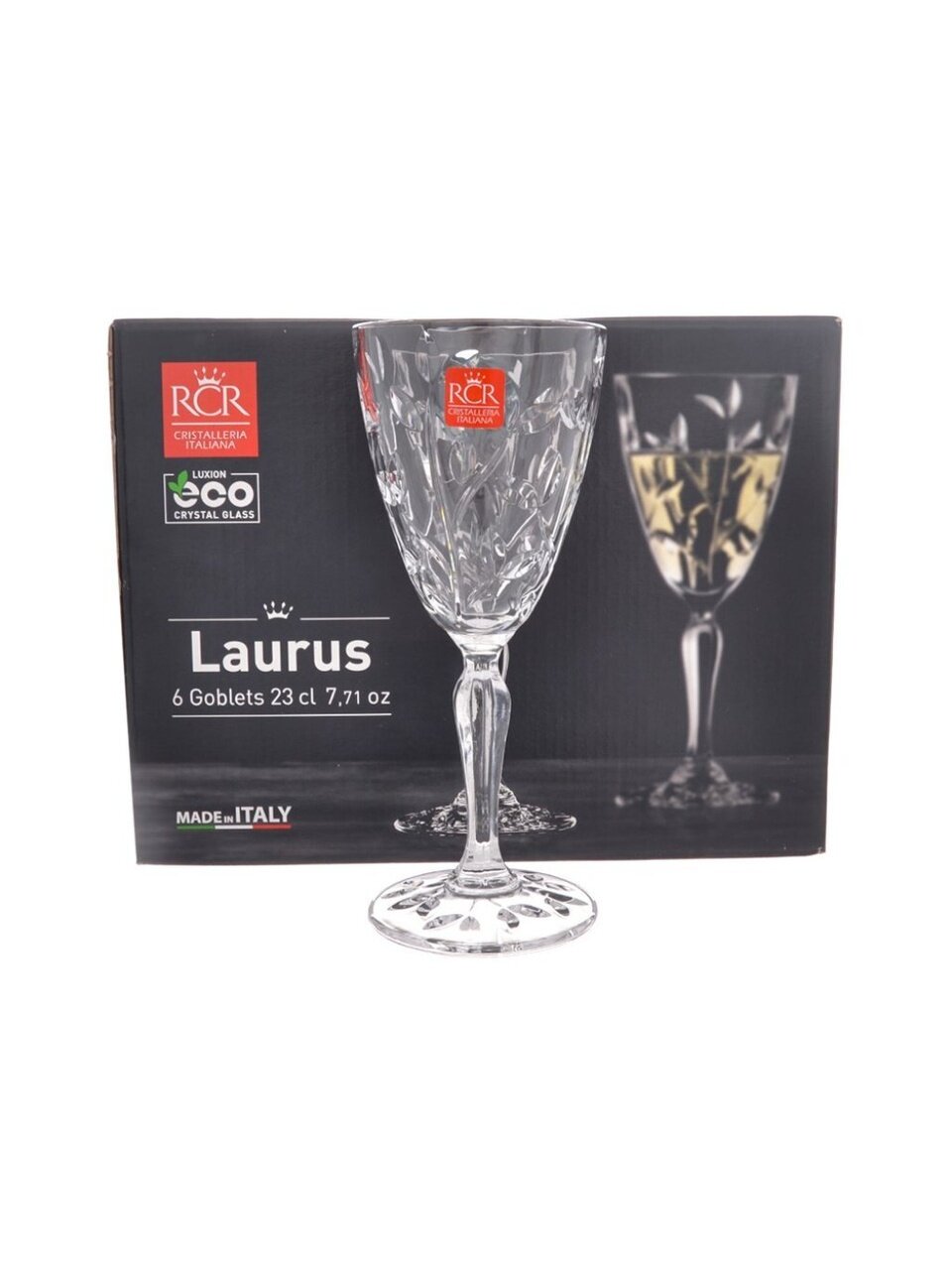 Премиальный набор бокалов для вина RCR Laurus 230 мл — 6 шт. из хрустального стекла: подарочная упаковка, изысканный рельеф, безопасно в посудомойке.