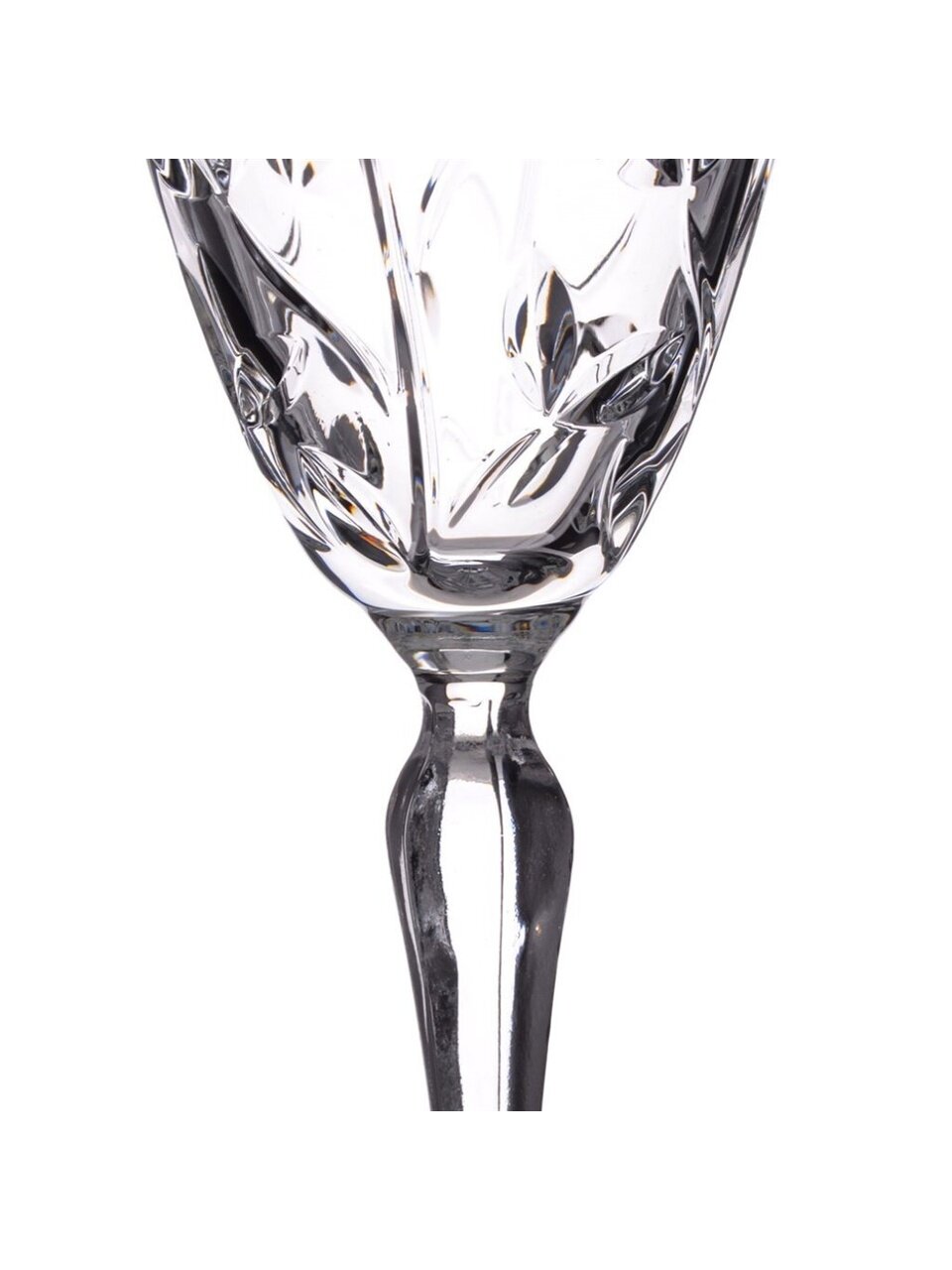 Объем каждого бокала — 230 мл, материал — рельефное хрустальное стекло, набор включает 6 штук, дизайн — прозрачный с узором, страна производства — Италия.