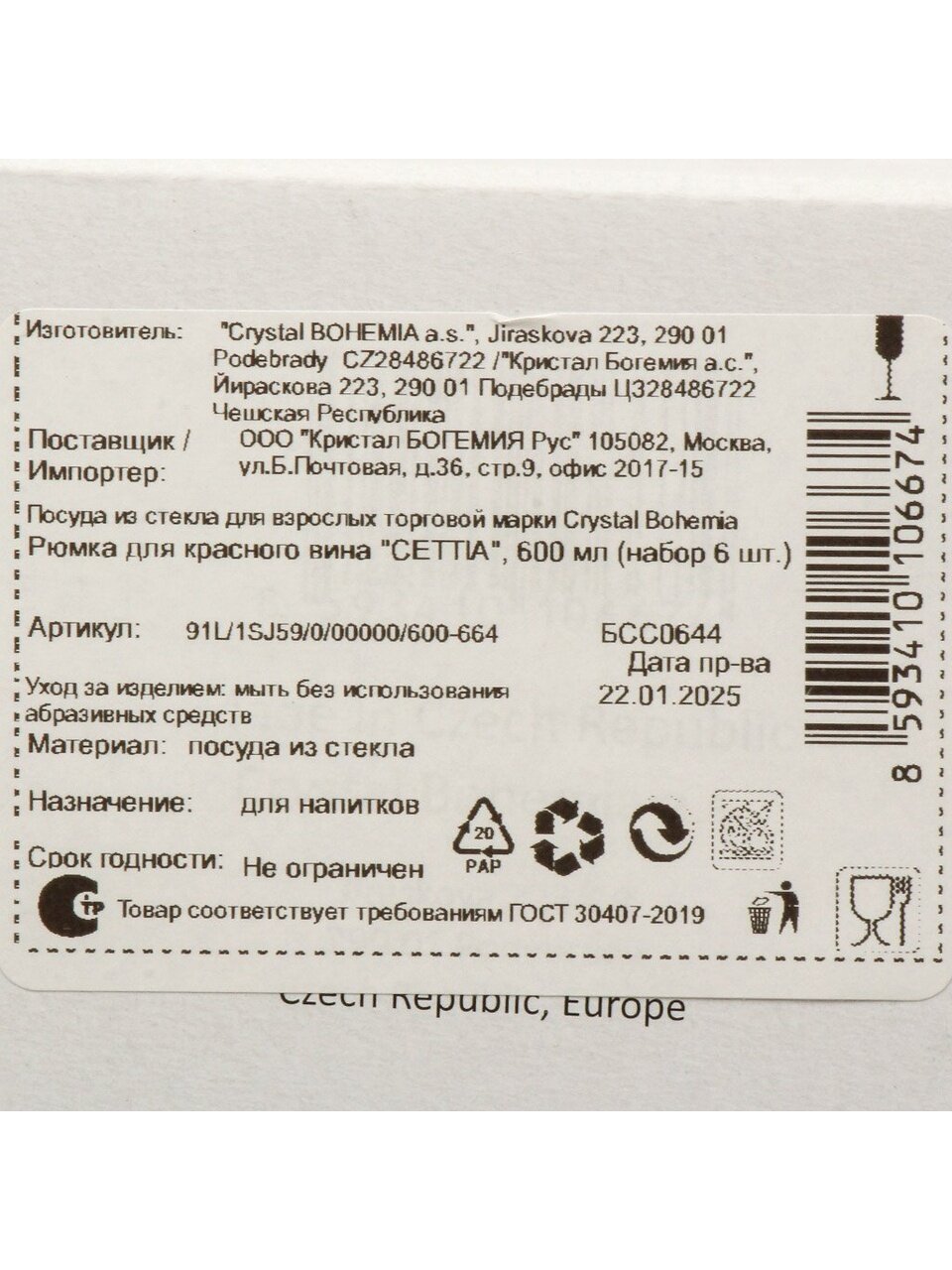 Вы можете приобрести «Бокал для вина, 600 мл, стекло, 6 шт, Bohemia, Cettia, 91L/1SJ59/0/00000/600-664» и другие товары в нашем интернет-магазине в Ставрополе по низким ценам и с бесплатным самовывозом.