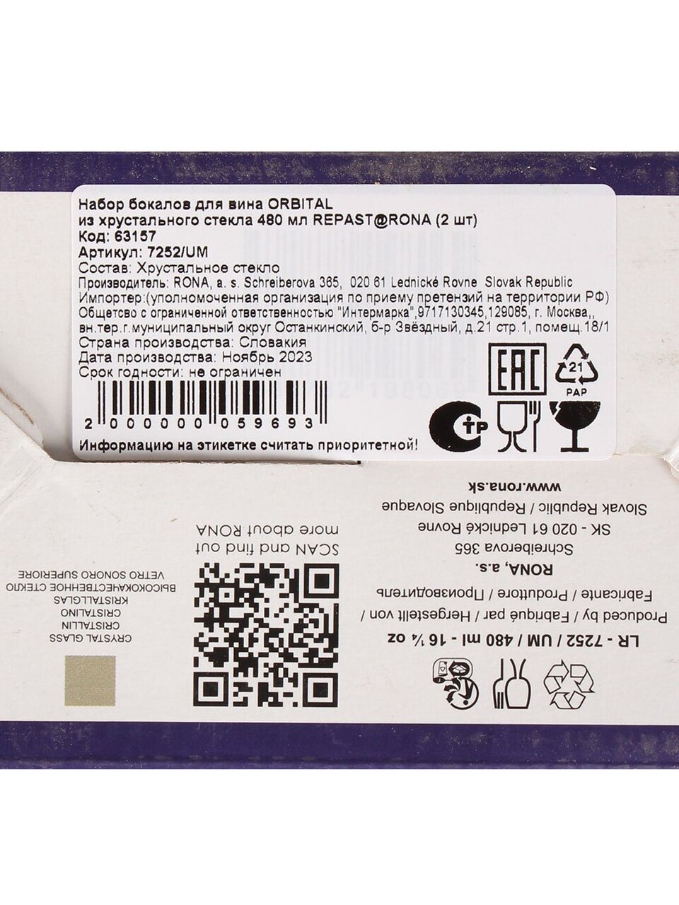 Вы можете приобрести «Бокал для вина, 480 мл, хрустальное стекло, 2 шт, Repast@Rona, Orbital, 63157» и другие товары в нашем интернет-магазине в Серпухове по низким ценам и с бесплатным самовывозом.