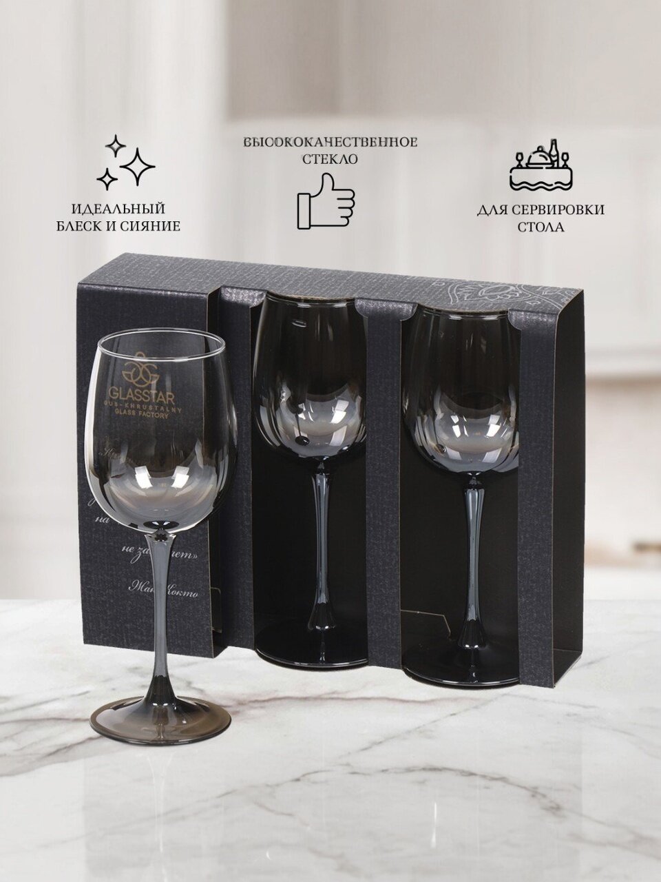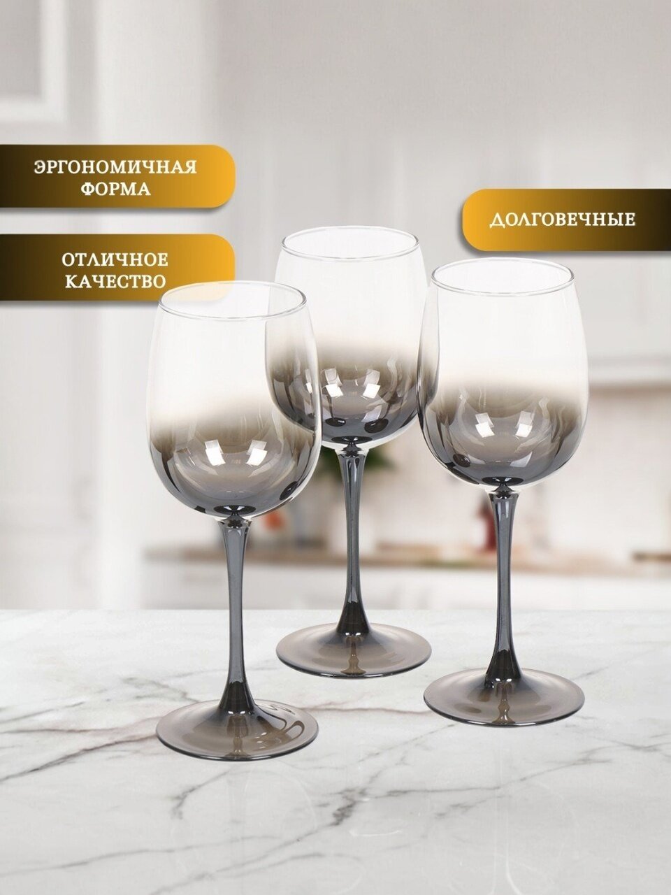 Бокалы для вина Glasstar Шоколад Омбре 420 мл (3 шт): стильная сервировка, подарок и комфортная дегустация по выгодной цене