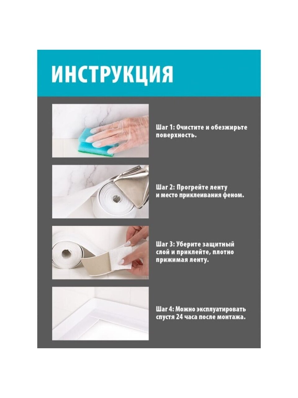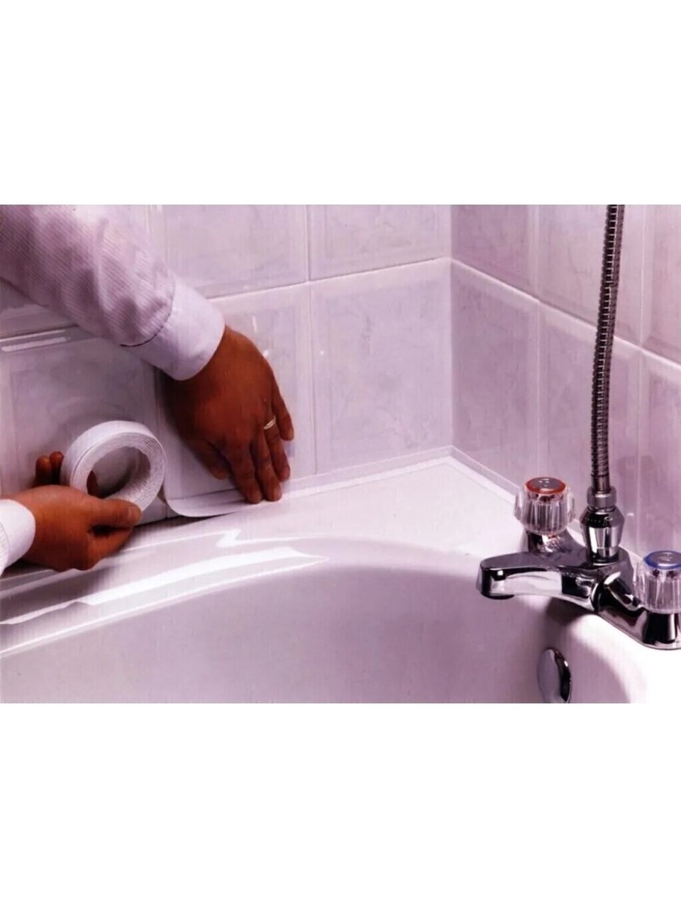 - Надежная герметизация: лента обеспечивает герметичное соединение между сантехникой и стеной, предотвращая проникновение влаги и образование плесени.