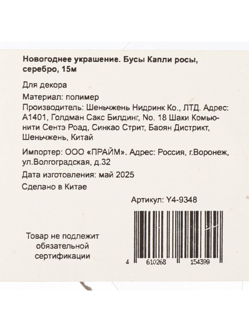 Бусы Капли росы, серебро, 15 м — стильный акцент для декора, подарка и праздничного оформления. Долговечные, универсальные, выгодная цена!