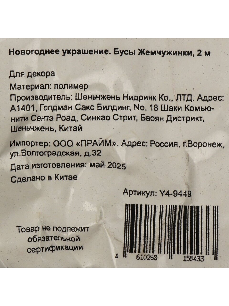 Вы можете приобрести «Бусы новогодние 200 см, белые, Жемчужинки, Y4-9449» и другие товары в нашем интернет-магазине в Железногорске по низким ценам и с бесплатным самовывозом.