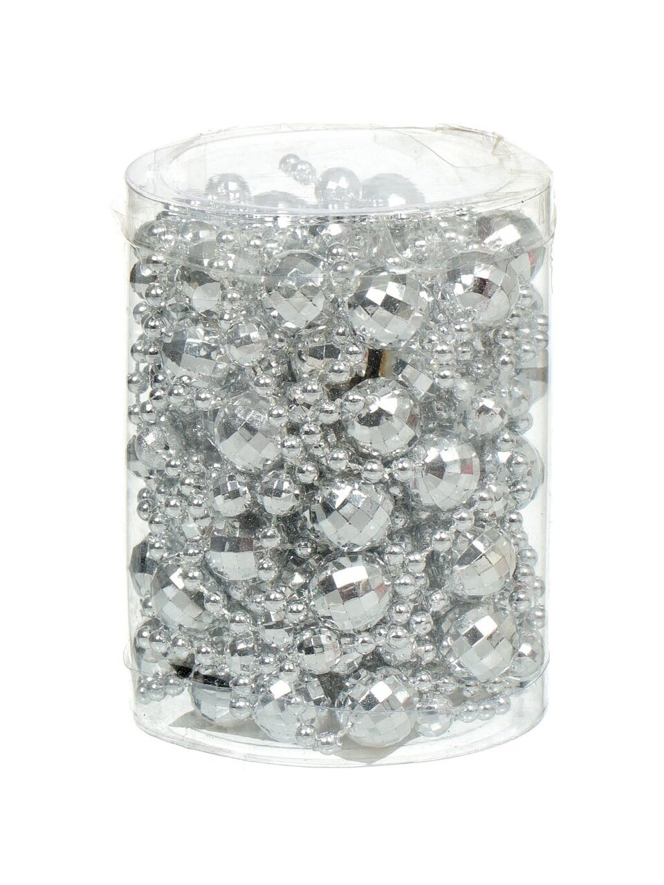 Бусы новогодние пластик, 1.4х500 см, круглые, серебряные, SY18ZL-86 S