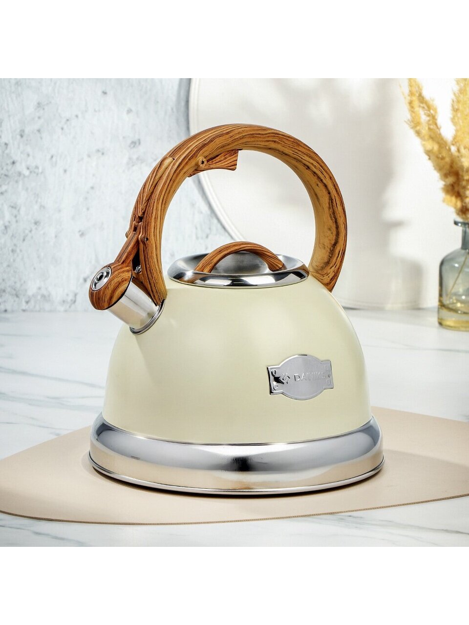 Откройте для себя идеальное сочетание стиля и функциональности с чайником из нержавеющей стали объемом 3.4 литра от бренда Daniks. Этот элегантный чайник в цвете слоновая кость станет не только полезным помощником на кухне, но и стильным дополнением к вашему интерьеру. Изготовленный из высококачественной нержавеющей стали, он обеспечивает долговечность и надежность в использовании. Благодаря матовой полировке чайник выглядит современно и утонченно.