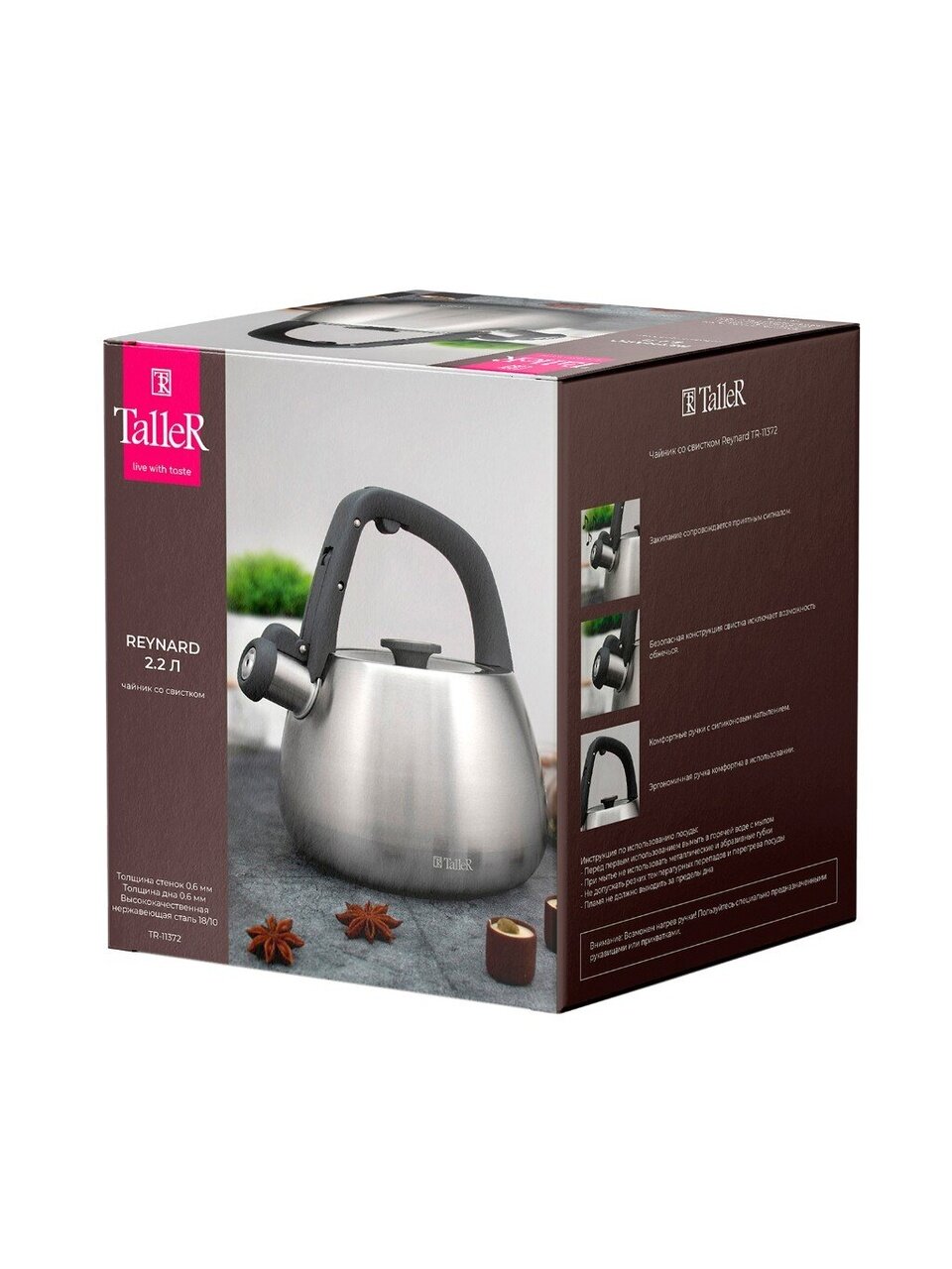 Вы можете приобрести «Чайник нержавеющая сталь, 2.2 л, со свистком, матовый, Taller, 11372» и другие товары в нашем интернет-магазине в Краснодаре по низким ценам и с бесплатным самовывозом.