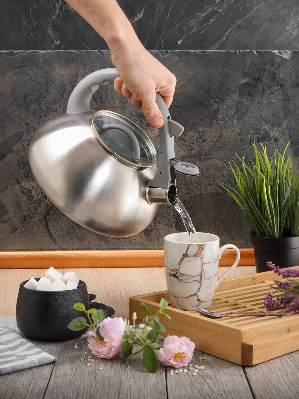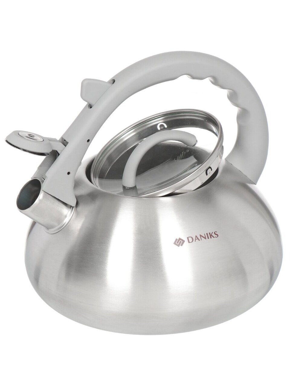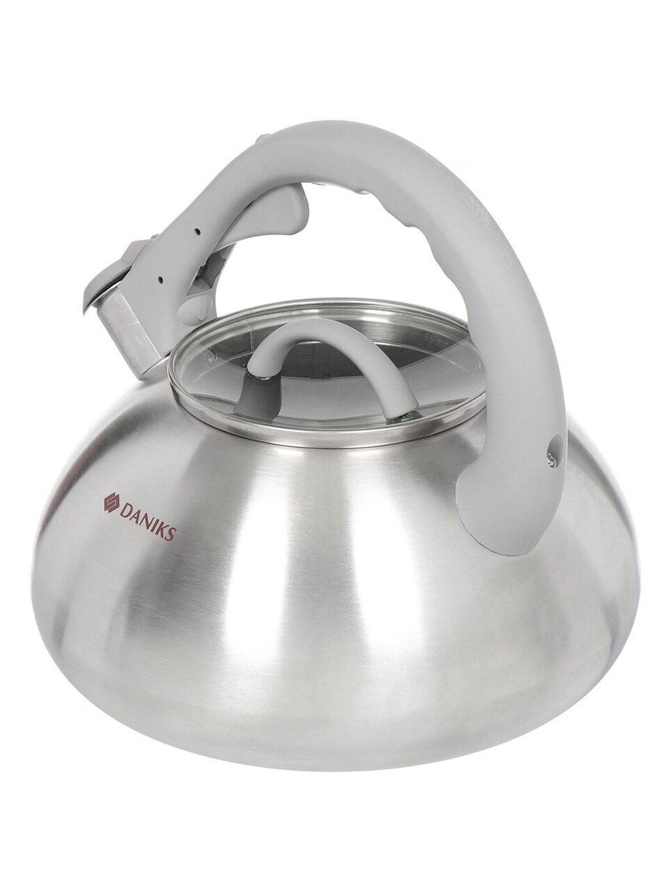 Вы можете приобрести «Чайник нержавеющая сталь, 3 л, со свистком, матовый, логотип меняет цвет, ручка с силиконовым покрытием, Daniks, DSC-8801» и другие товары в нашем интернет-магазине в Клинцах по низким ценам и с бесплатным самовывозом.