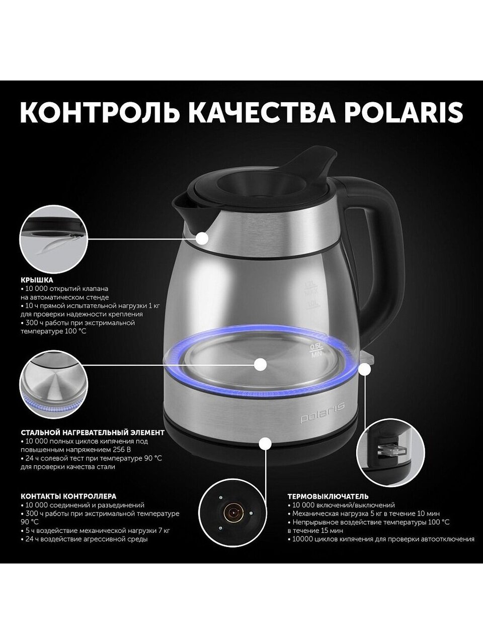Электрические чайники - это существенная экономия времени и ресурсов. Достаточно нажать на одну кнопку, после чего можно ожидать закипание воды, которое произойдет буквально за пару минут. Электрический чайник Polaris прост в управлении и долговечен в использовании.