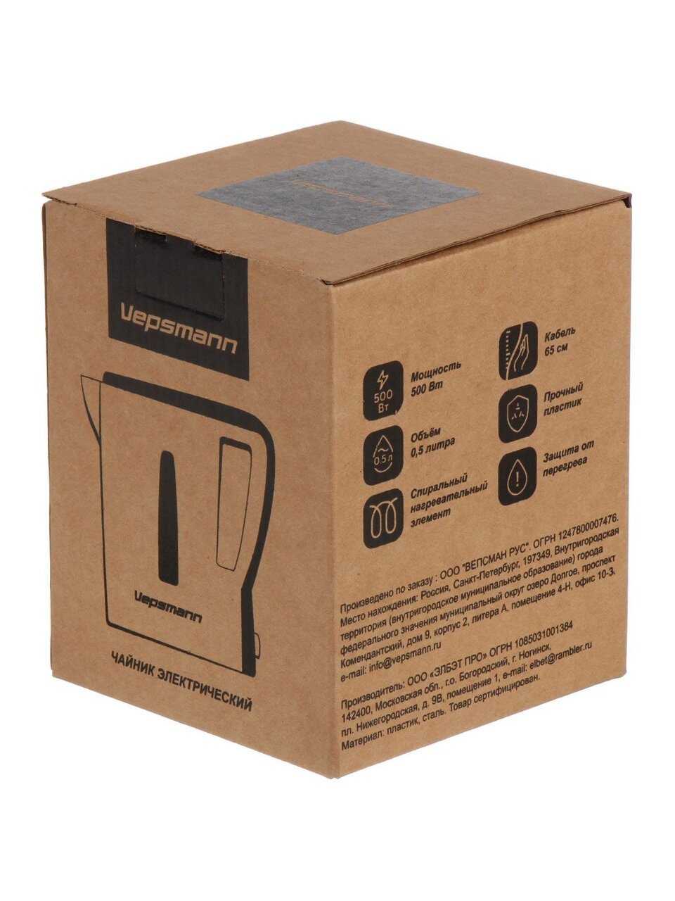 Вы можете приобрести «Чайник электрический Vepsmann, VN-160, белый, 0.5 л, 500 Вт, открытый нагревательный элемент, пластик» и другие товары в нашем интернет-магазине в Старом Осколе по низким ценам и с бесплатным самовывозом.
