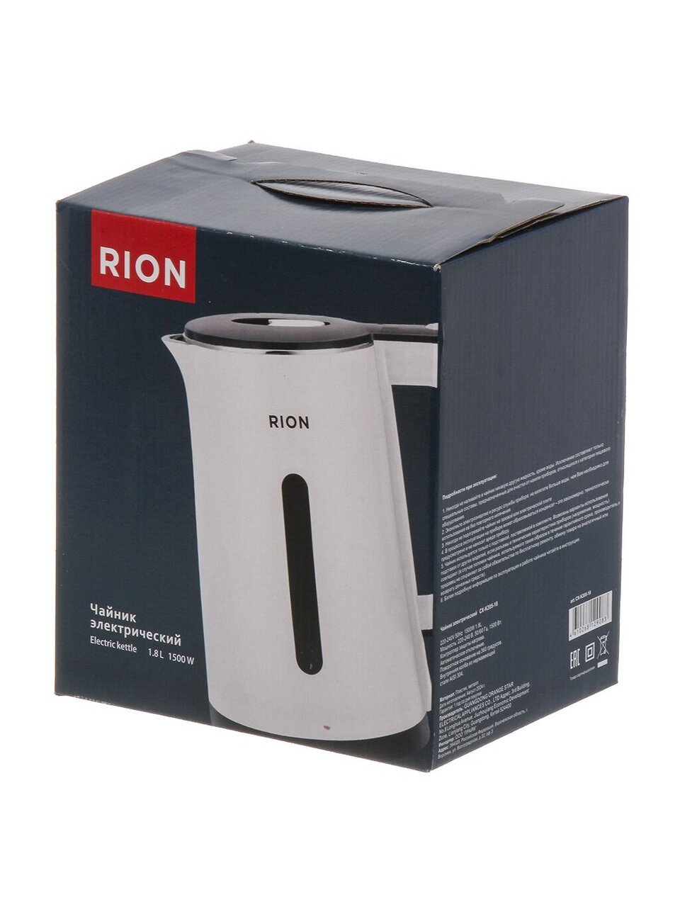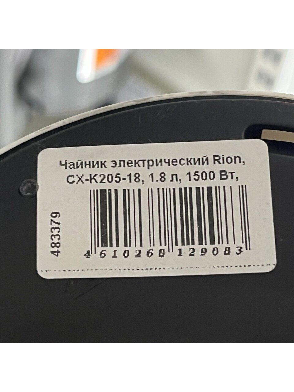 Вы можете приобрести «Чайник электрический Rion, CX-K205-18, 1.8 л, 1500 Вт, скрытый нагревательный элемент, сталь, пластик» и другие товары в нашем интернет-магазине в Брянске по низким ценам и с бесплатным самовывозом.