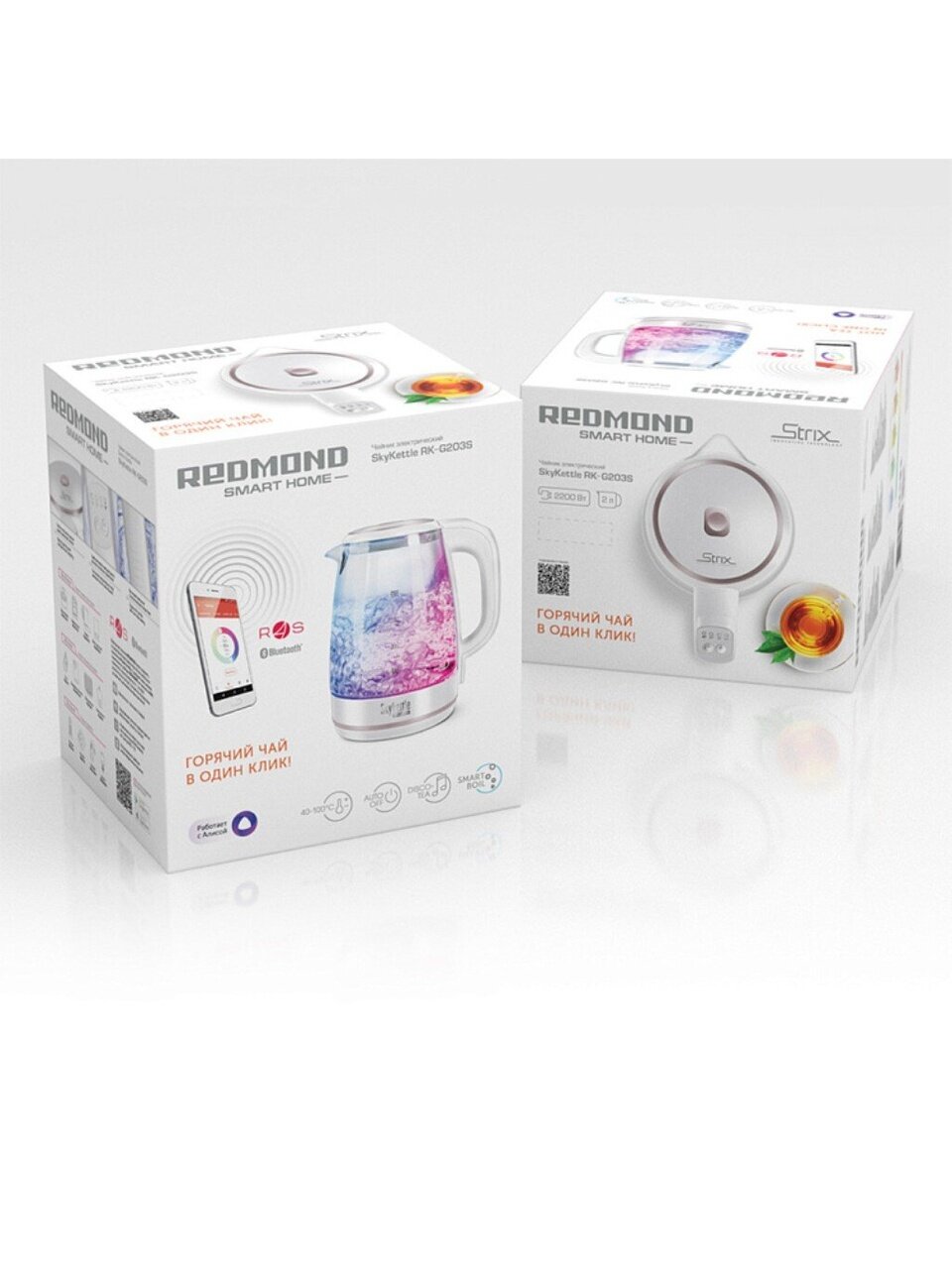 Вы можете приобрести «Чайник электрический Redmond, SkyKettle RK-G203S, Strix, белый, 2 л, смарт, 2200 Вт, скрытый нагревательный элемент, стекло» и другие товары в нашем интернет-магазине в Воронеже по низким ценам и с бесплатным самовывозом.