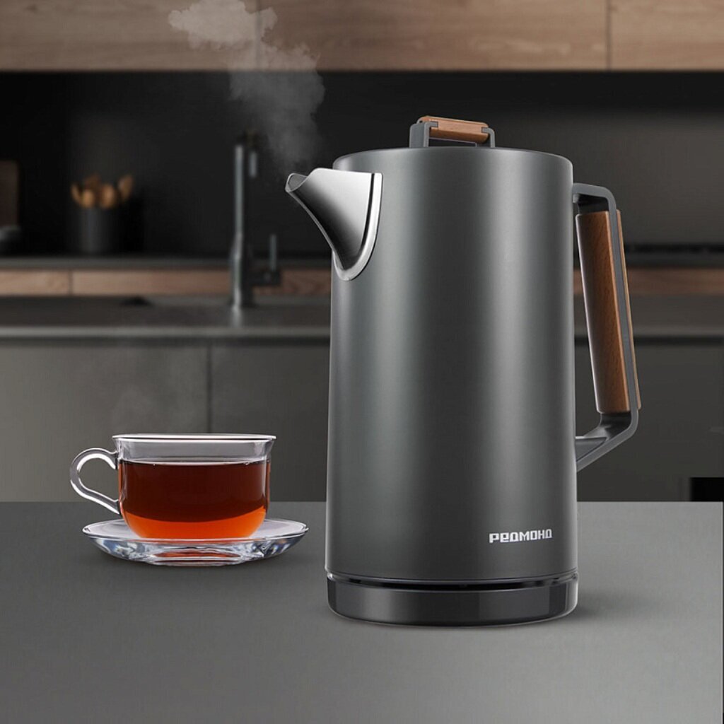 Чайник Redmond будет настоящей жемчужиной в вашем доме благодаря своему стильному дизайну. Его металлический корпус дополнен элементами, напоминающими дерево, что делает его привлекательным для тех, кто ценит оригинальность. Внутри установлен британский механизм Strix, который гарантирует долговечность устройства - он прослужит более 10 лет. Чайник также оборудован удобной откидной крышкой и фильтром от накипи, что облегчит уход за ним.