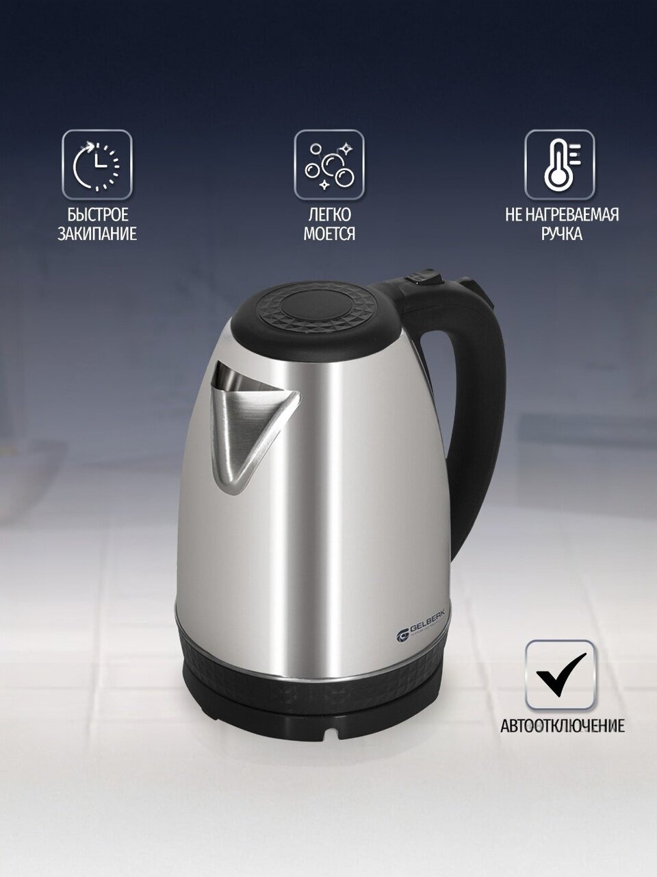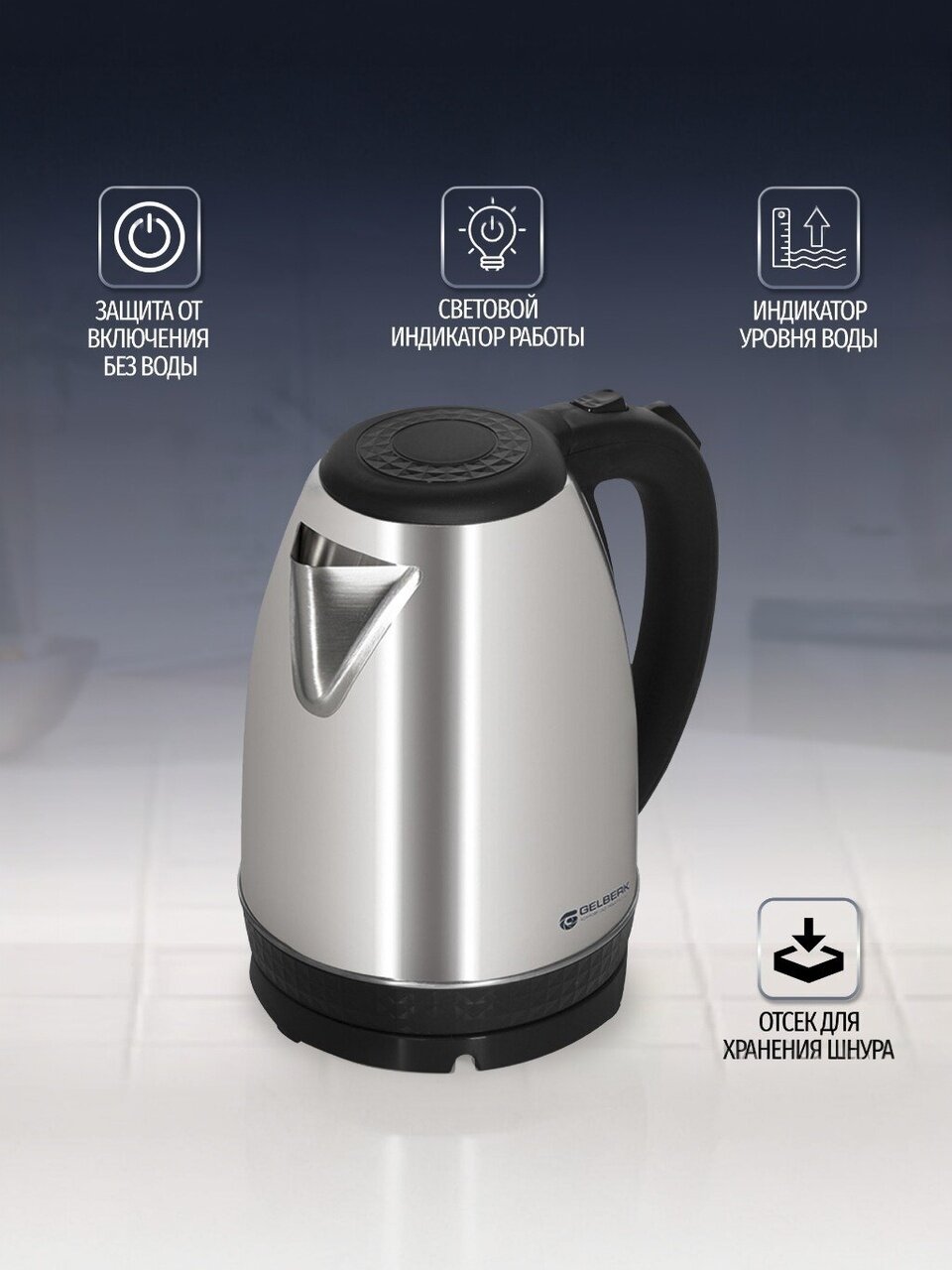 Чайник электрический GL-450 мощностью 1500 Вт, с увеличенным объемом 1,8 л. от компании GELBERK станет украшением вашей кухни. Металлический корпус, выполненный из нержавеющей стали делает его не только красивым, но и практичным. Даже при сильном ударе снаружи и внутри чайник останется целым и невредимым.