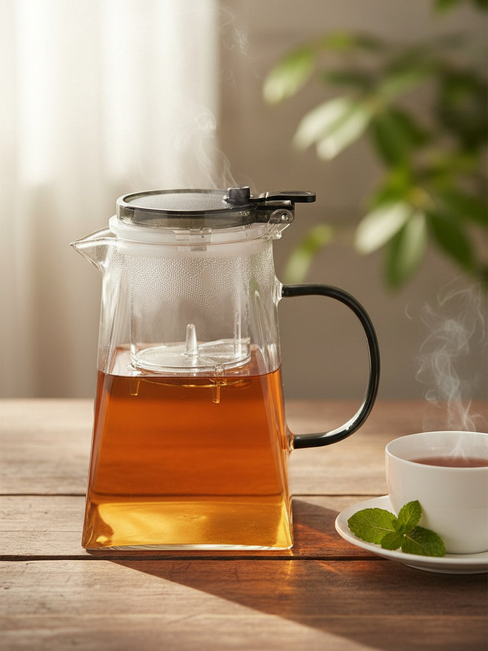 - Практичный объём 0.95 л — оптимально для семьи или компании; съёмное ситечко из нержавеющей стали облегчает уход и подходит для разных видов чая