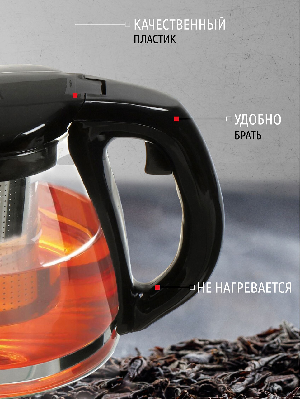 Чайник заварочный можно использовать для заваривания как чая, так и различных травяных настоев, а удобная крышка поддержит нужную температуру. Изделие изготовлено по современной технологии из высокопрочного стекла. Материал чайника отличается износоустойчивостью и легкостью, не впитывает запахи, прост в использовании и мойке. Сетчатый фильтр не позволит чаинкам или мелким частям отвара попасть в напиток. Прозрачный корпус позволяет контролировать процесс заваривания, чтобы получить напиток желаемой крепости.